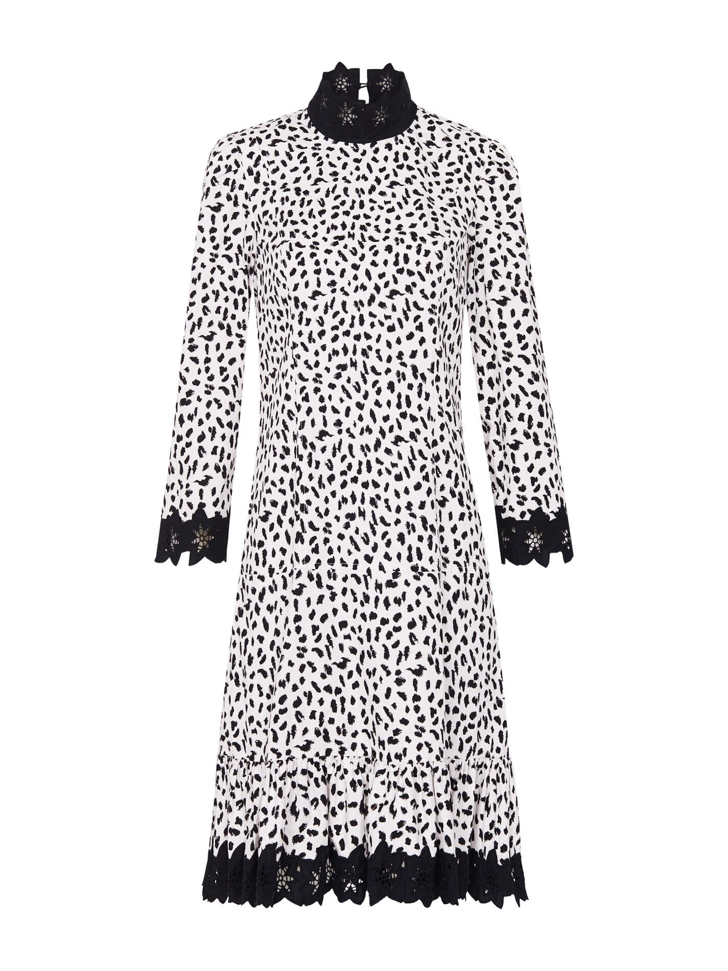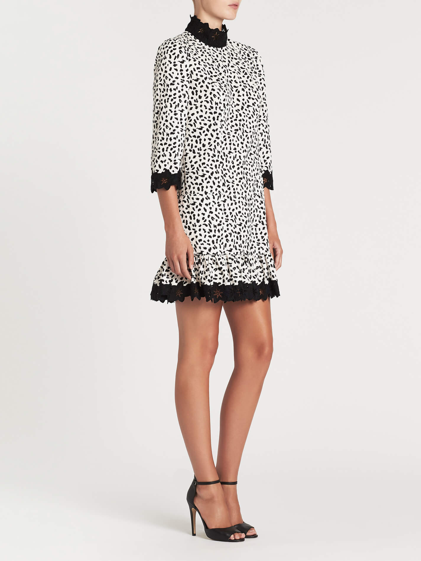 Bring out your wild side with the Jaguar Print Dress in Sand by Rebecca Taylor. The relaxed and comfortable silhouette is hemmed with intricate black lace embroidery and a subtly ruffled hemline. Team the Rebecca Taylor Jaguar Print Dress with black tights and boots to exude cool in the winter months, or radiate in slide on mules and a boxy handbag in the warmer months.