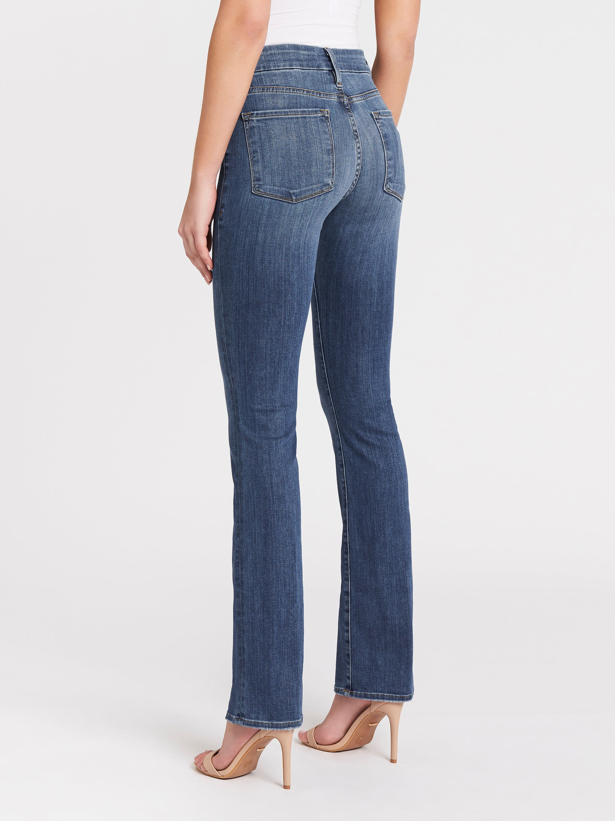 The Le Mini Boot in Poe by Frame Denim is the perfect addition to update your denim collection this season. Constructed from an ultra soft cotton blend these straight cut mid rise jeans feature a comfortable contoured form fitting waistband, dual front and back pockets with gold metal hardware detailing. Finished with a single zip fly closure and a silhouette that tapers out from the knee for that slight sleek kick at the ankle. Give life to a simple tee and pair back with your favourite boot for the ultimate laid back weekend look.