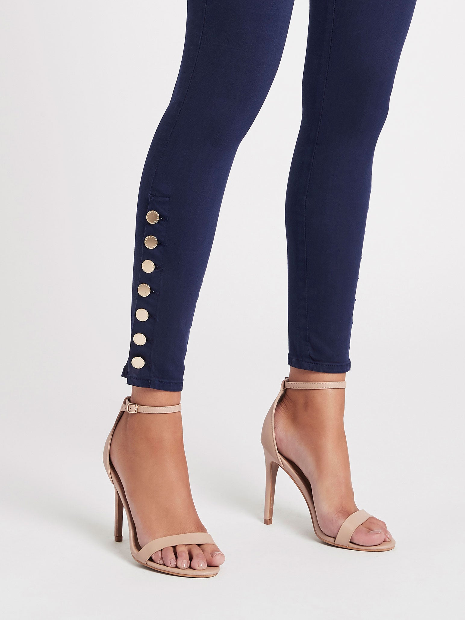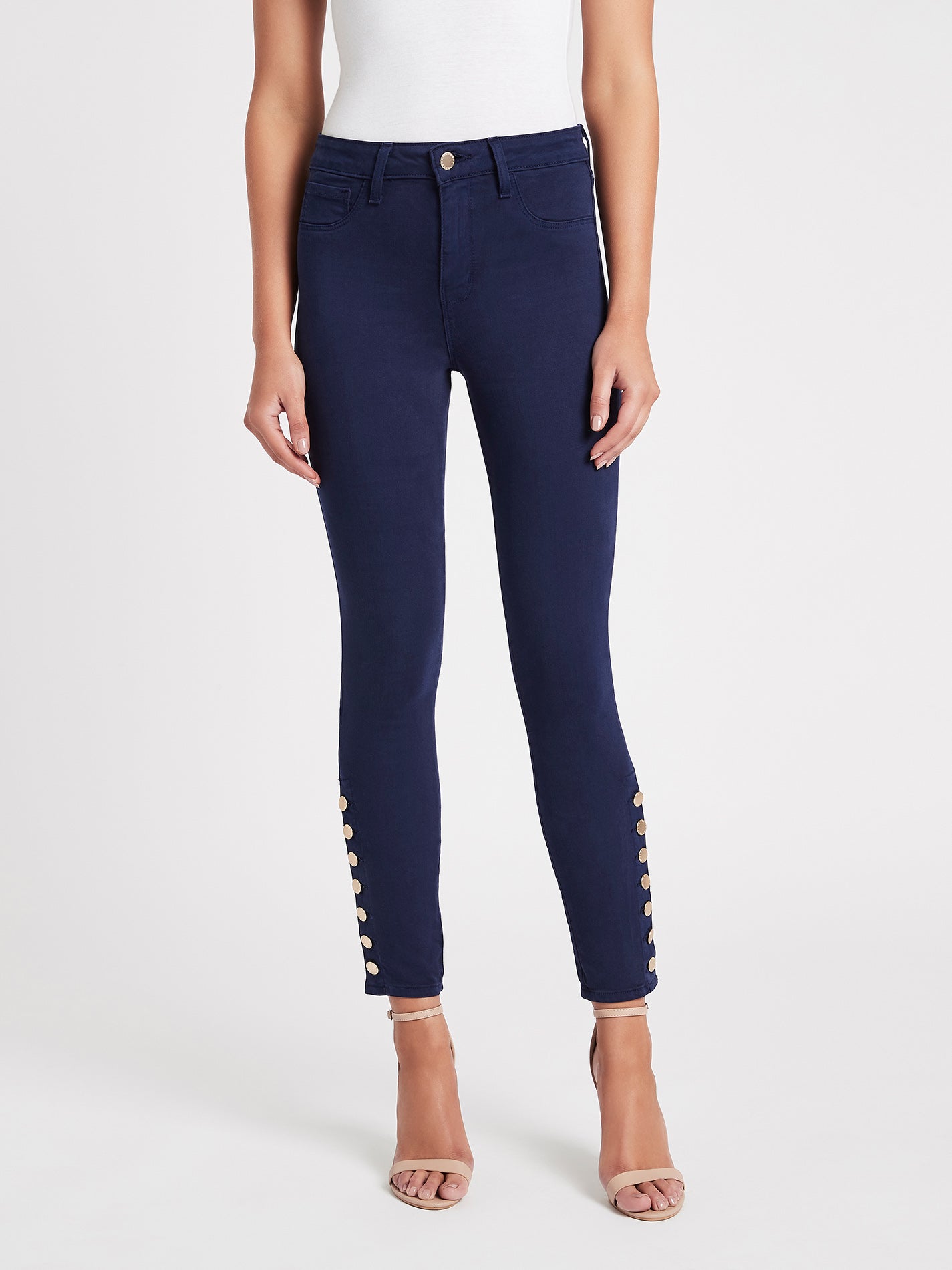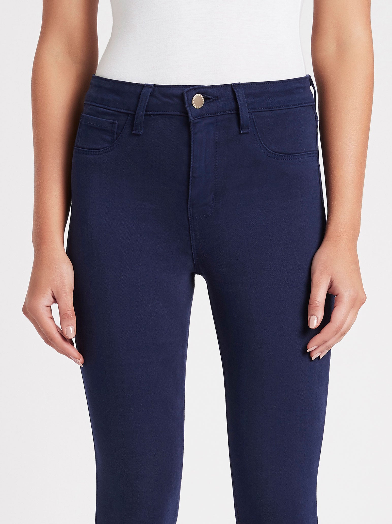 The L'Agence Piper High Rise Skinny Jean in Stargazer are a high waisted, slim fitting jean with a dark navy hue. Crafted from super stretch denim, these mid denim jeans feature gold dome button details along the ankle, dual front and back pockets and are finished with the signature contoured waistband for a stay put feel. Team yours with the L'Agence Kenzie Double Breasted Blazer in Navy for a polished style.