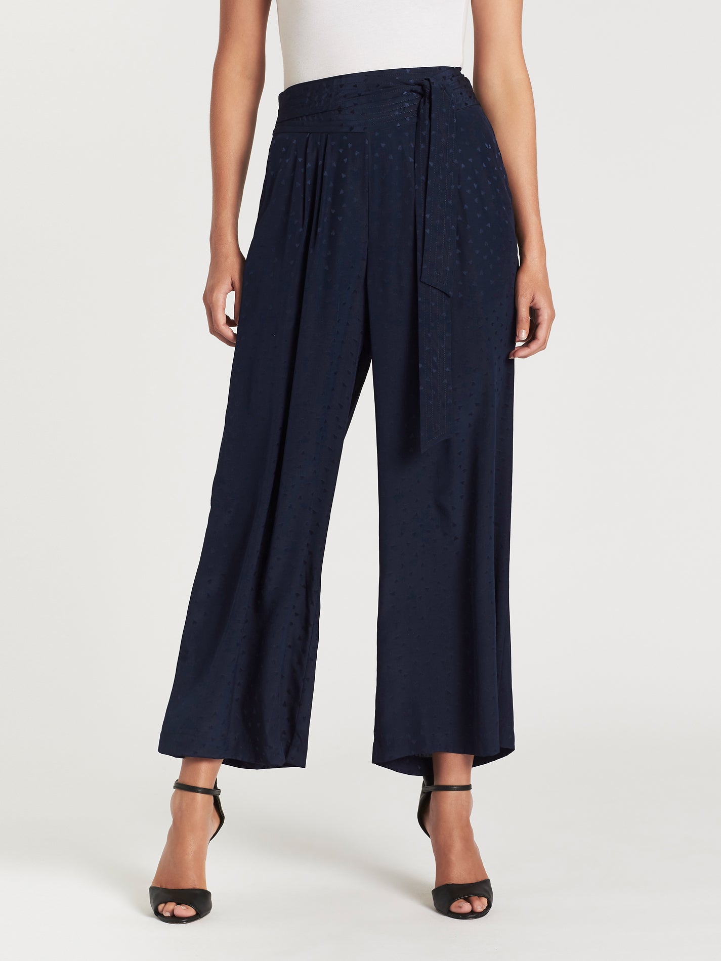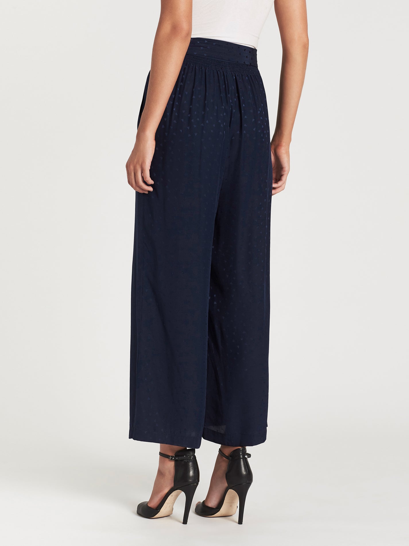 The Rebecca Taylor Silk Jacquard Pant in Navy is made from 100% Silk