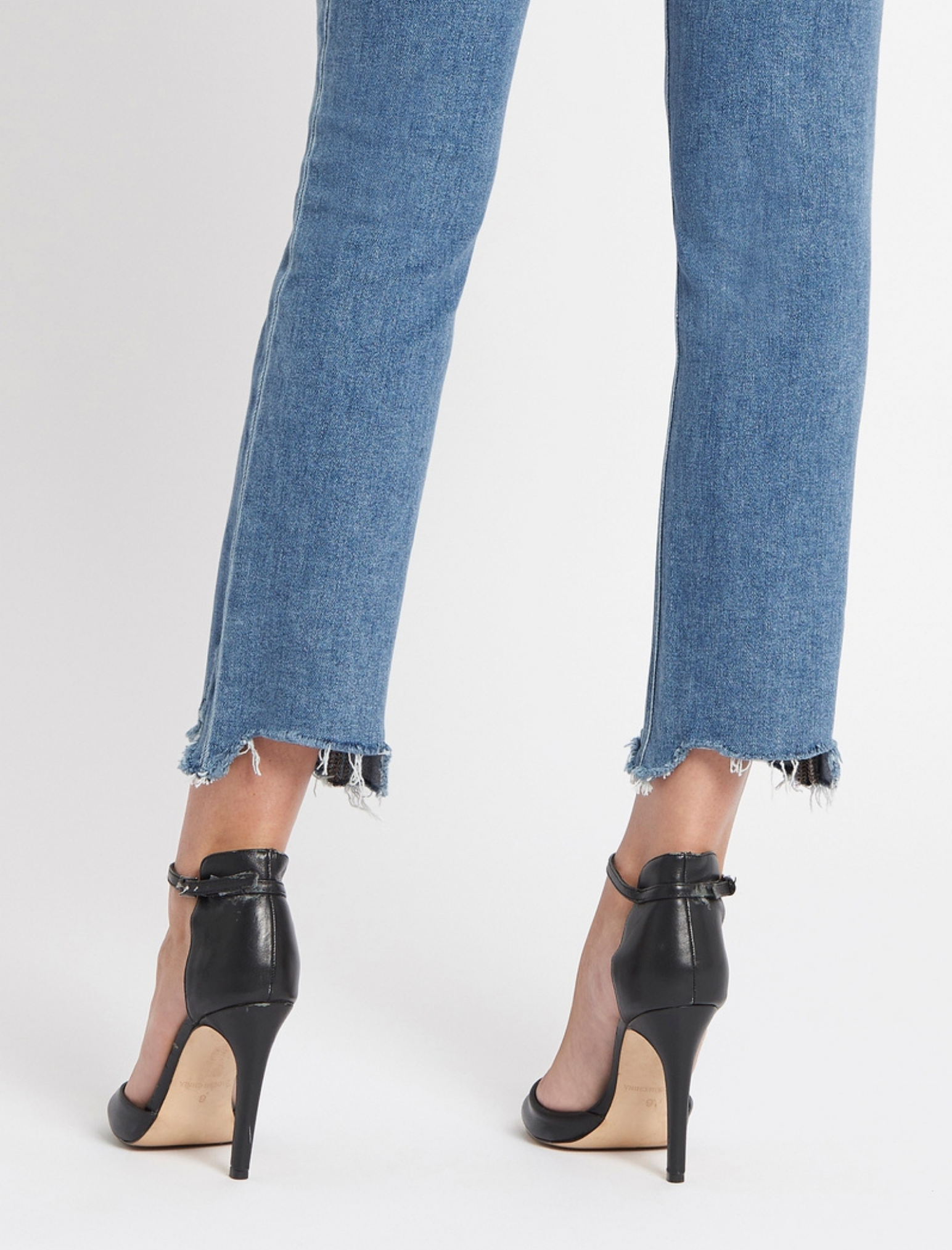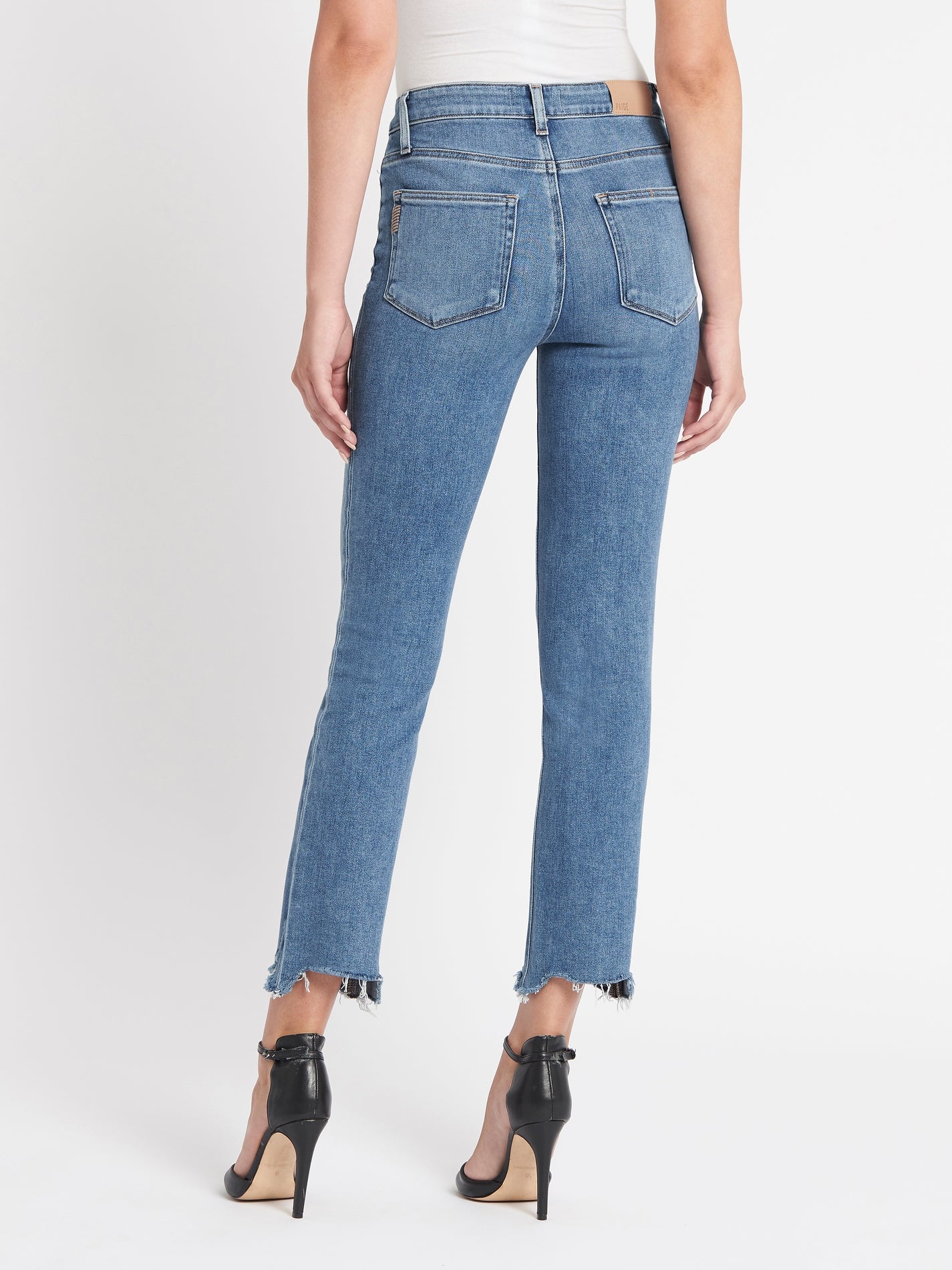 The straight leg jean is having a real moment, and Paige deliver the ultimate high rise pair with the Cindy Jean in Mel Destroyed Hem. Constructed from Paige Denim's much loved, super soft Transcend Vintage fabric, these straight leg jeans feature a single button zip fly closure, front and back pockets, silver and bronze hardware and are finished with a raw, destroyed hem at the ankle.