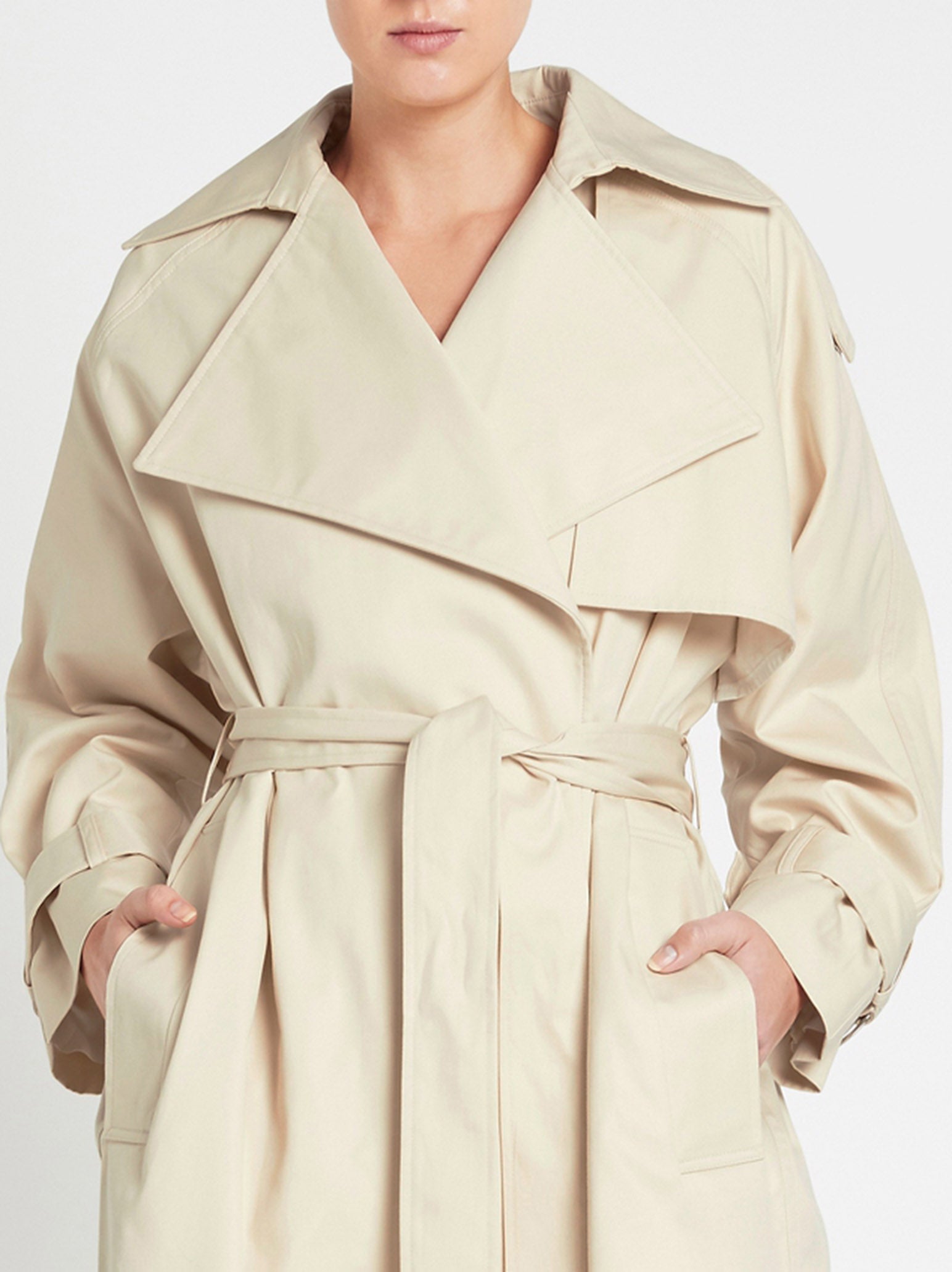 The IRO Mezouls Trench Coat in Beige is made from 51% Cotton, 49% Viscose