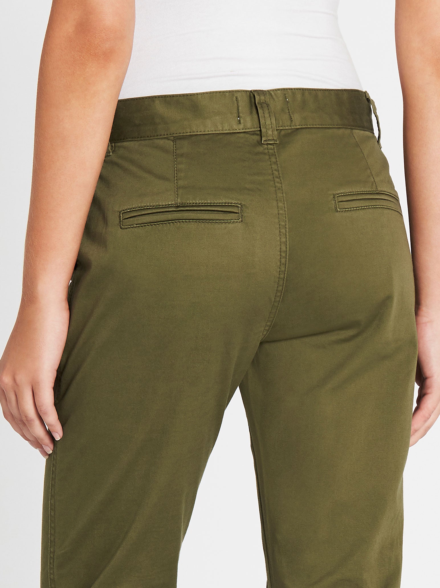 The Current Elliott Confidant Pant in Capulet Olive is made from 98% Cotton, 2% Spandex
