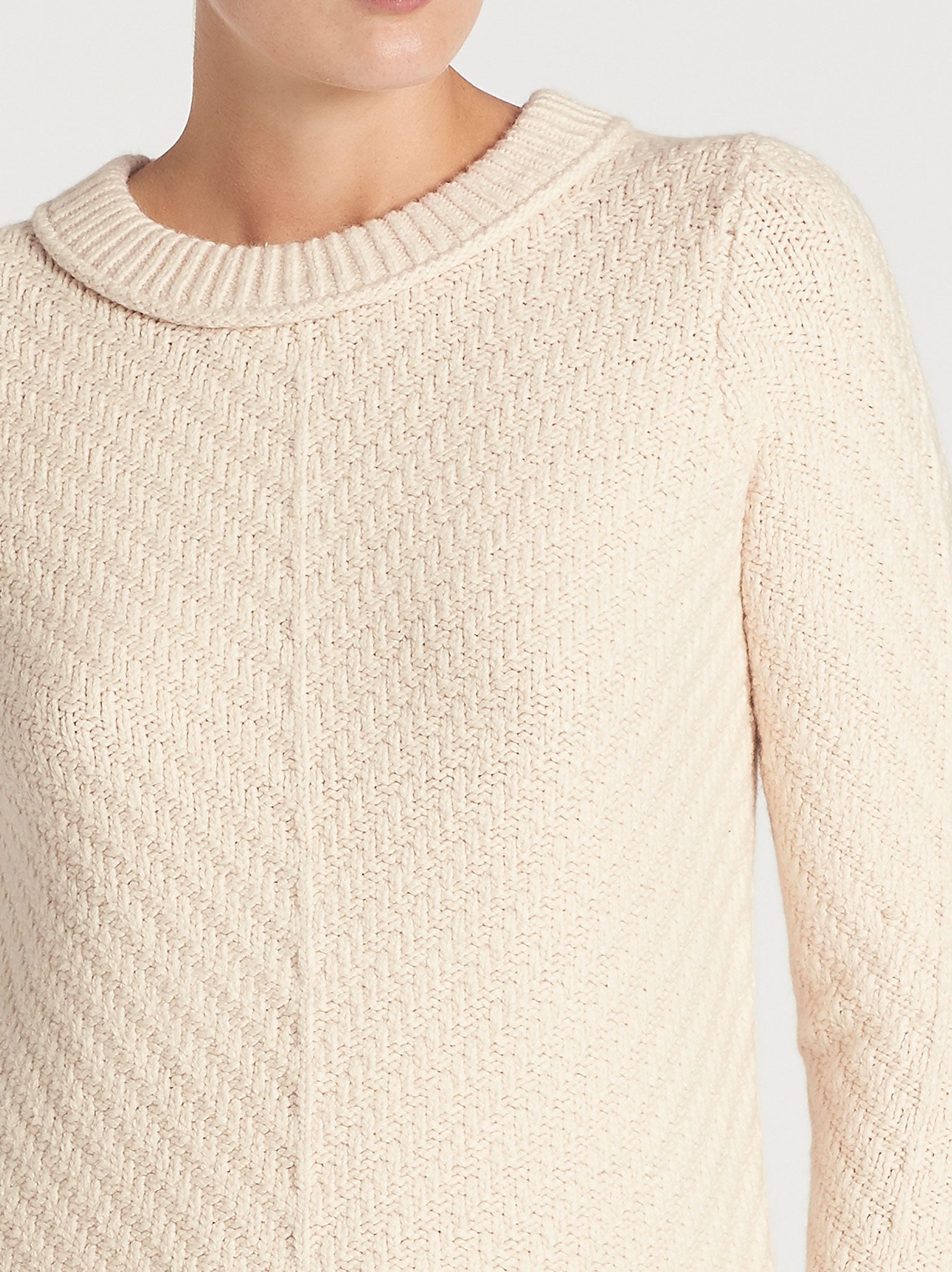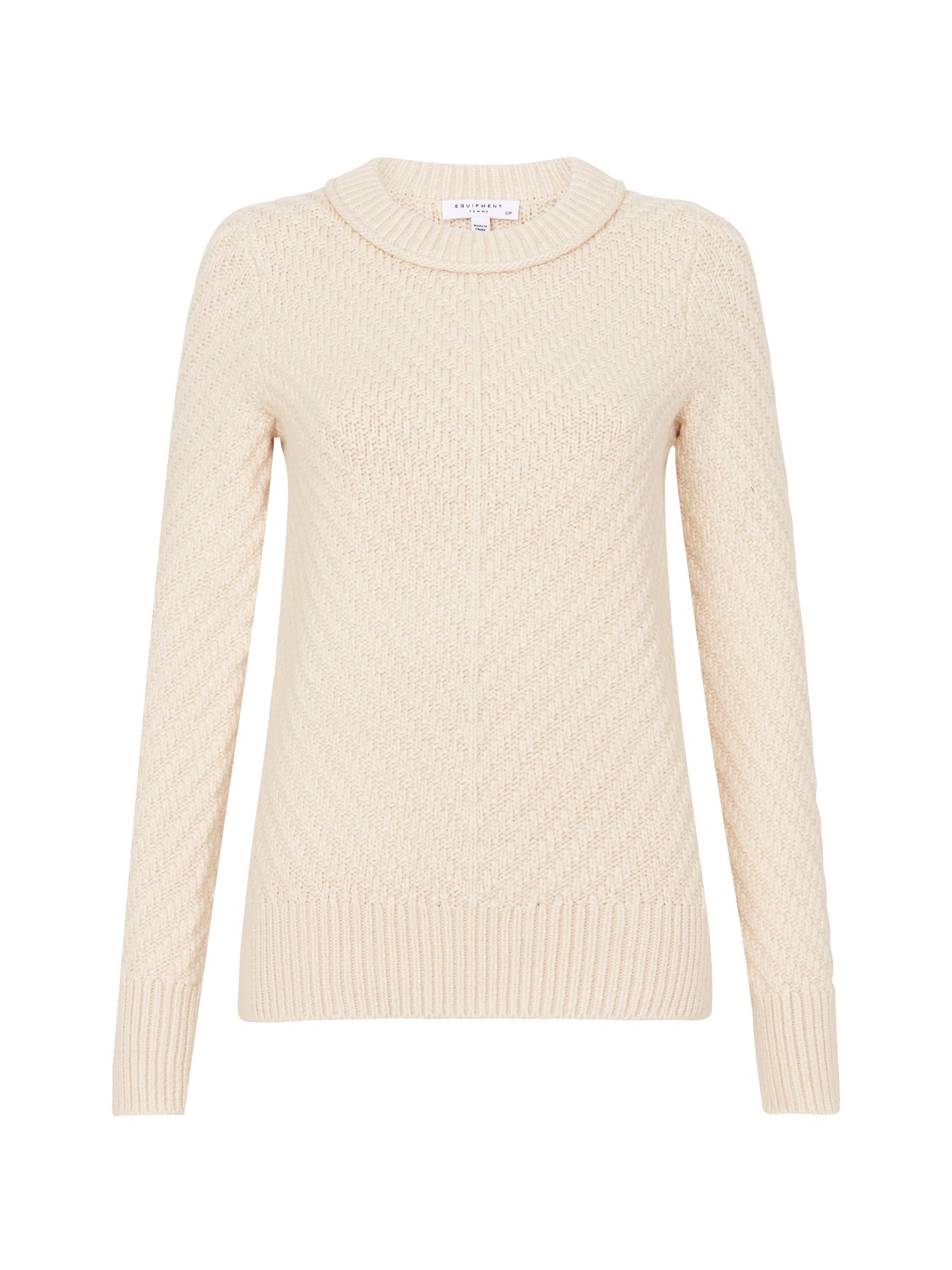 The Equipment Cheree Sweater in Nature White is made from 70% Cotton, 20% Nylon, 10% Cashmere