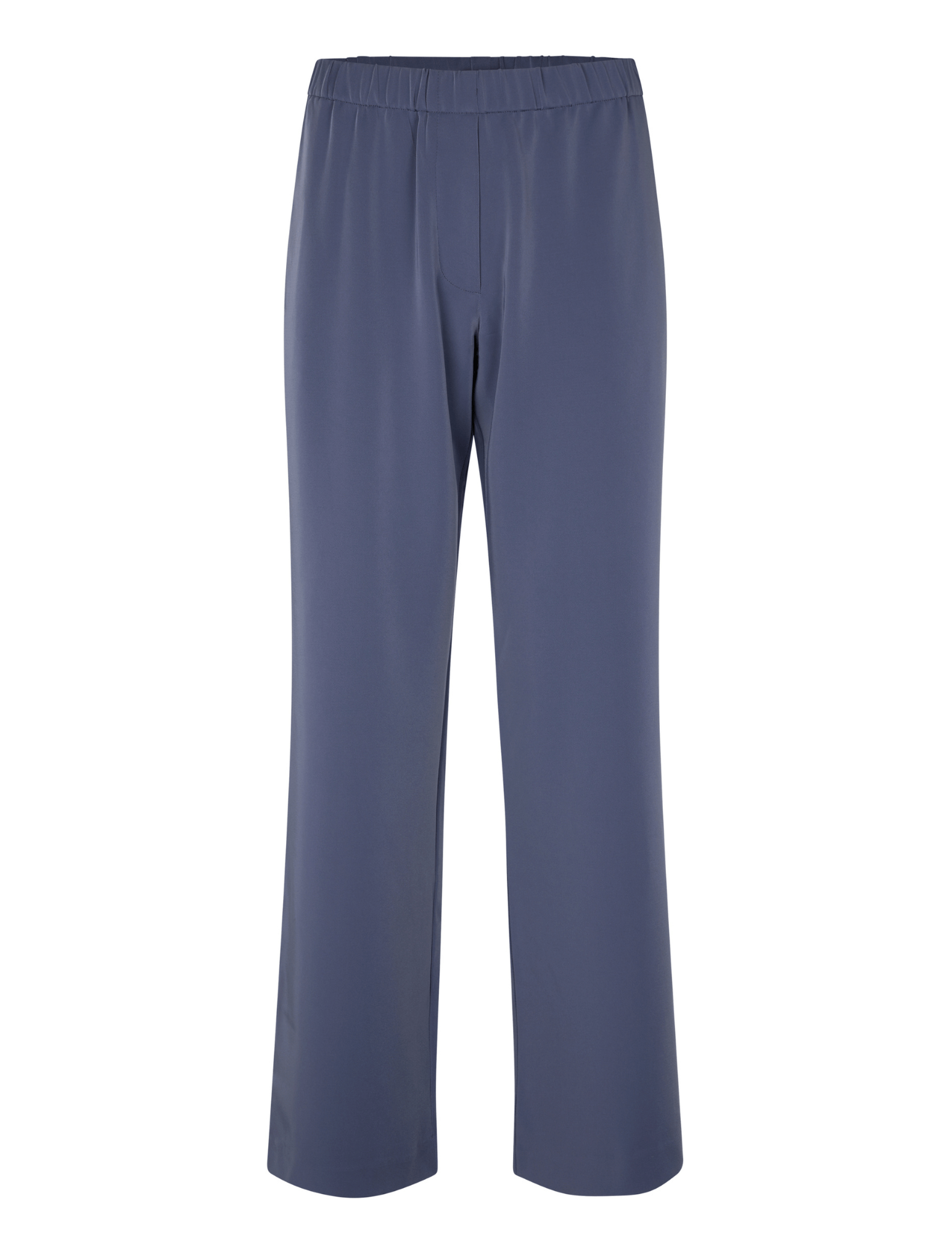 The Samsoe Samsoe Hoys Straight Pant in Nightshadow Blue is made from 96% Polyester, 4% Elastane, Lining: 100% Cotton
