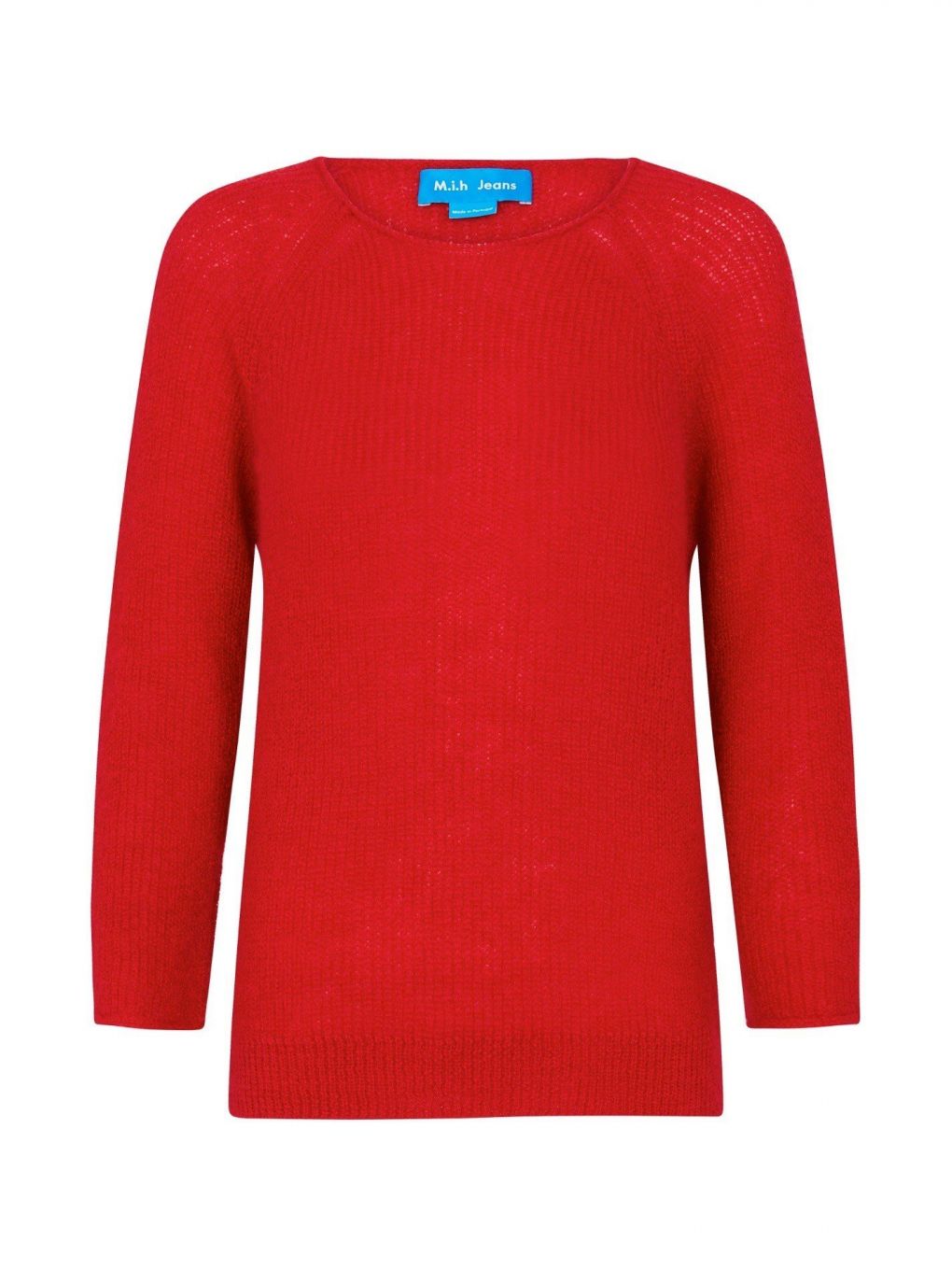Add a subtle hint of colour to your wardrobe with the M.I.H Jeans Bowen Sweater in Cherry Red. Constructed in an ultra light mohair blend this knit features an open round neck raglan, bracelet length sleeves and a classic rib knit hem. Pair with a white tee and your favourite boyfriend jeans for easy weekend style.
