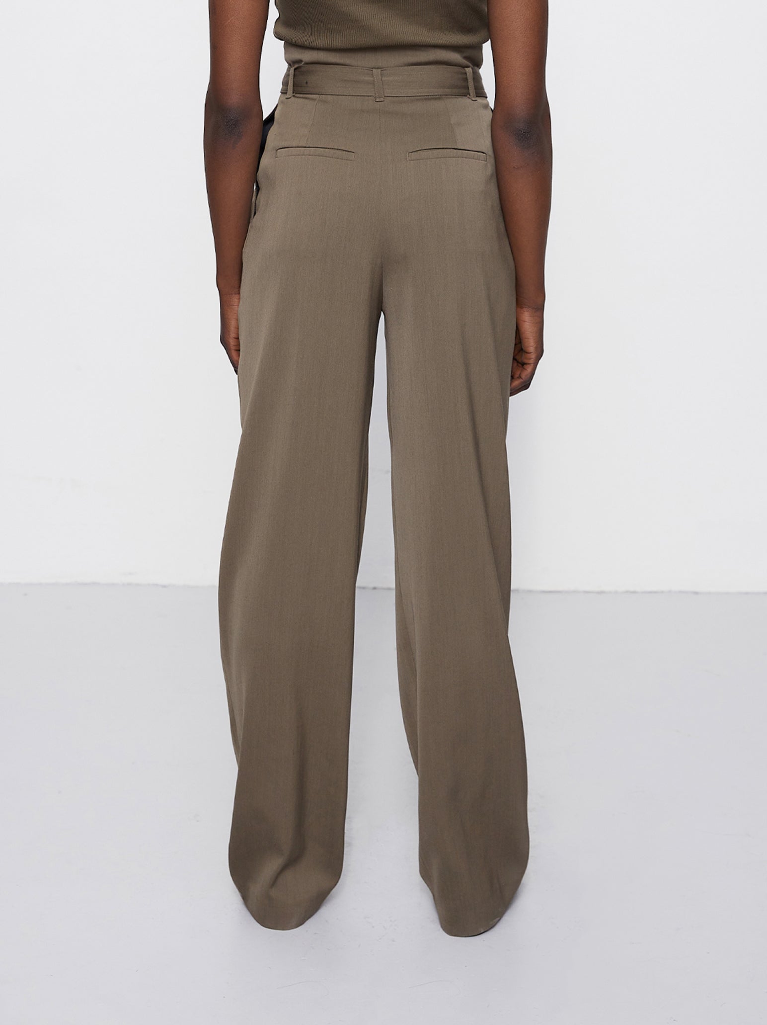 The Róhe Celia Trouser in Khaki is constructed from 61% Virgin Wool, 39% Nylon