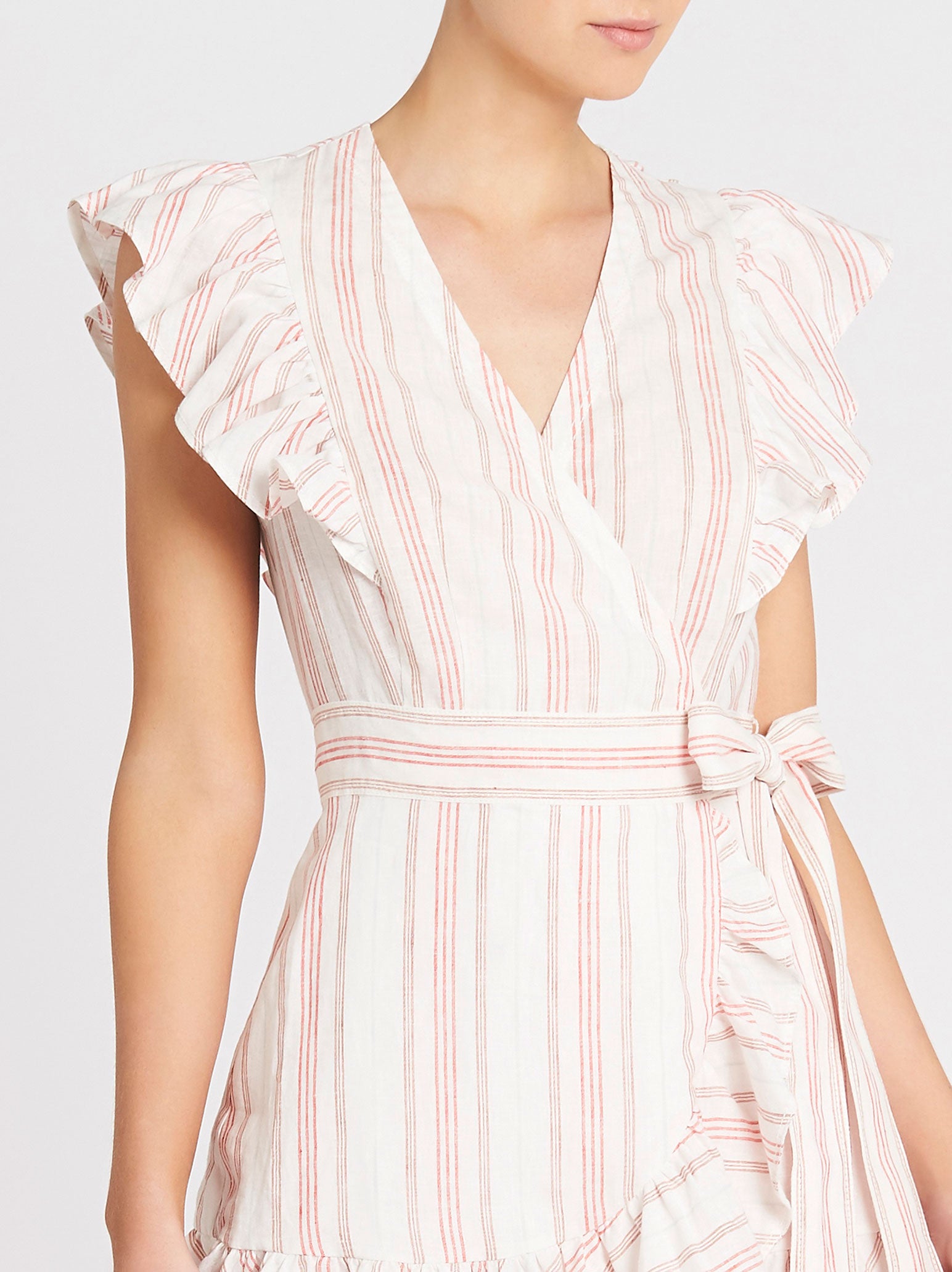 The Rebecca Taylor Yarn Dyed Stripe Wrap Dress in Snow is made from 100% Linen, Lining: 100% Cotton
