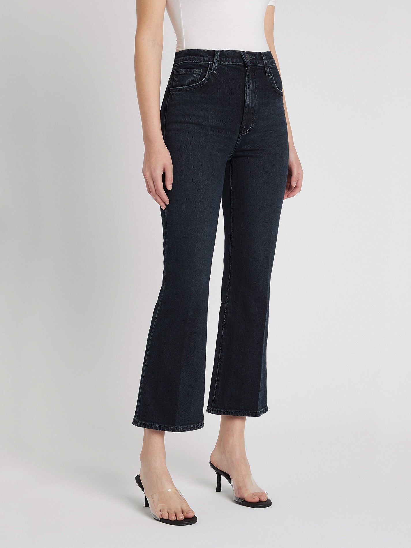The J Brand Julia High Rise Flare Jean in Nocturne Raze is made from 78% Cotton, 20% Lyocell, 2% Polyurethane