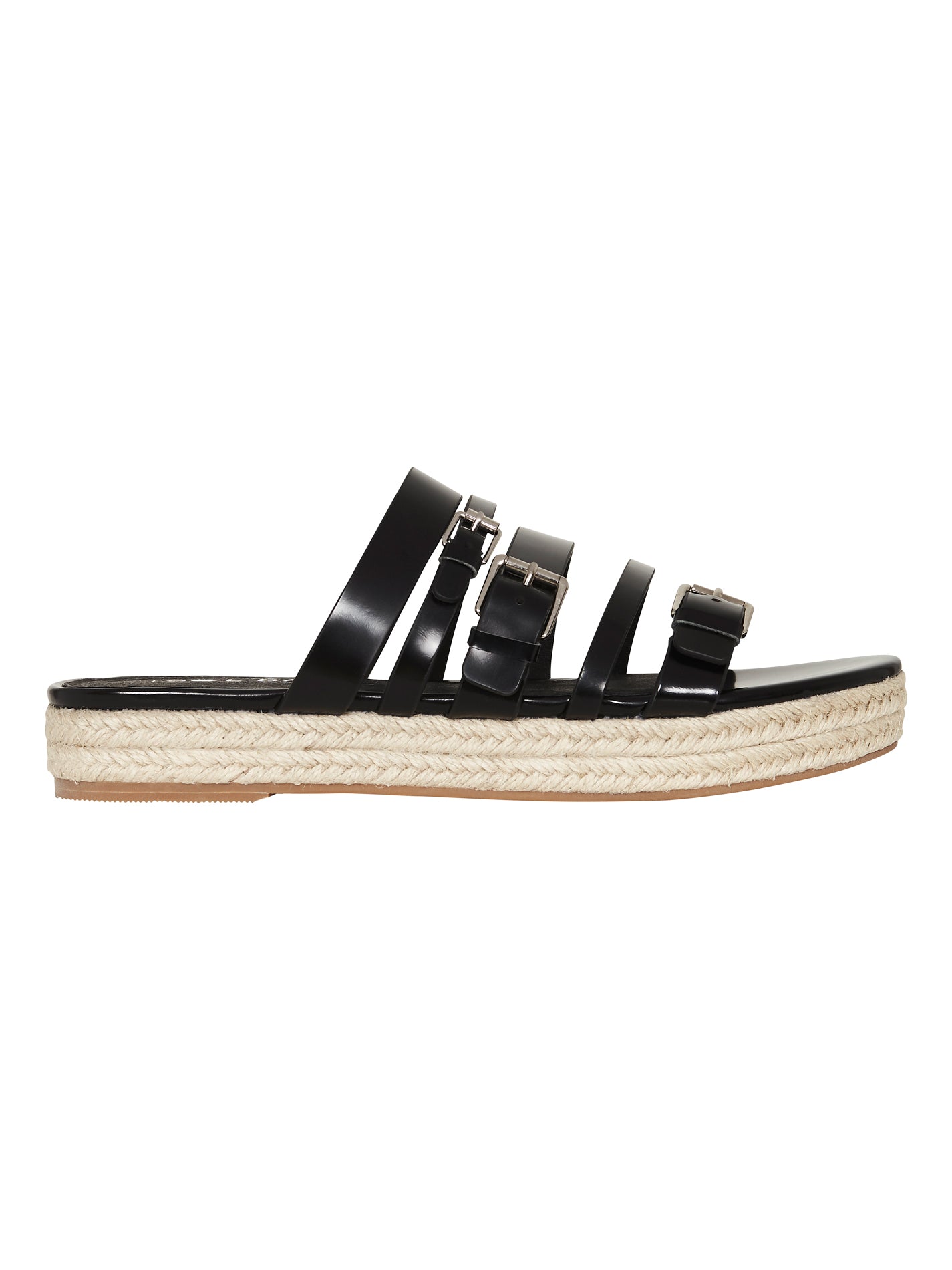 Take your summer style to the next level with the Sol Sana Joan Espadrille in Gloss Black. These are an easy to wear, open toe slip on featuring buckle straps and straw toned jute on the 2cm platform.