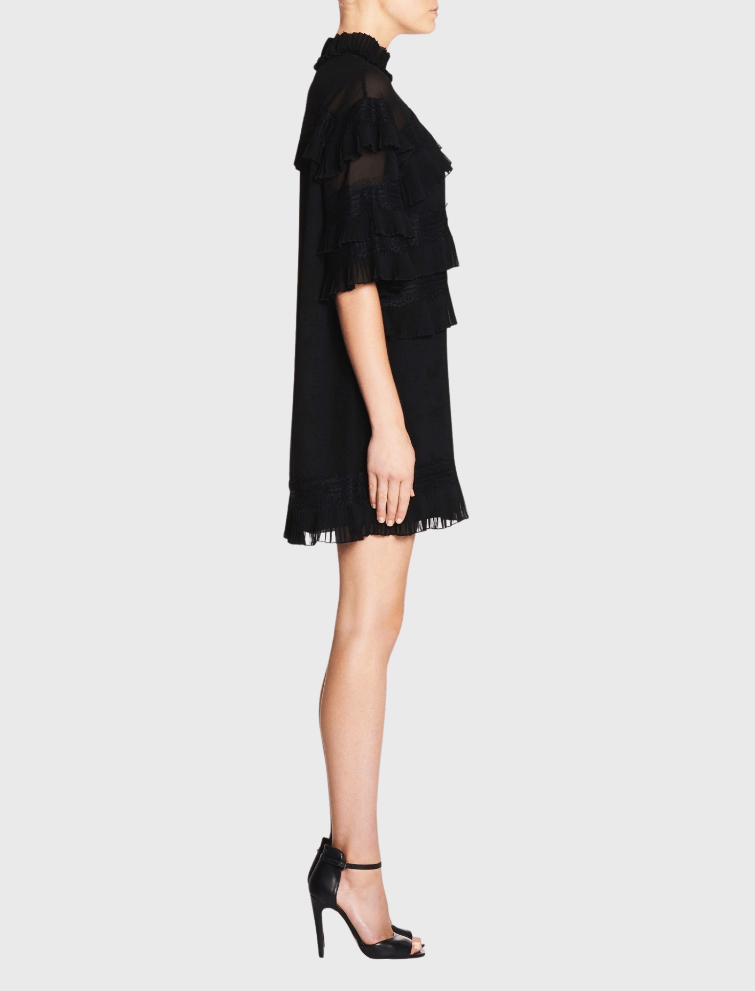 A little black dress with a twist, the Piana Dress by IRO features ruffled pleat detailing through the body and three quarter length sleeves. With a back keyhole with button closure this dress is the perfect outfit to throw on for instant style.