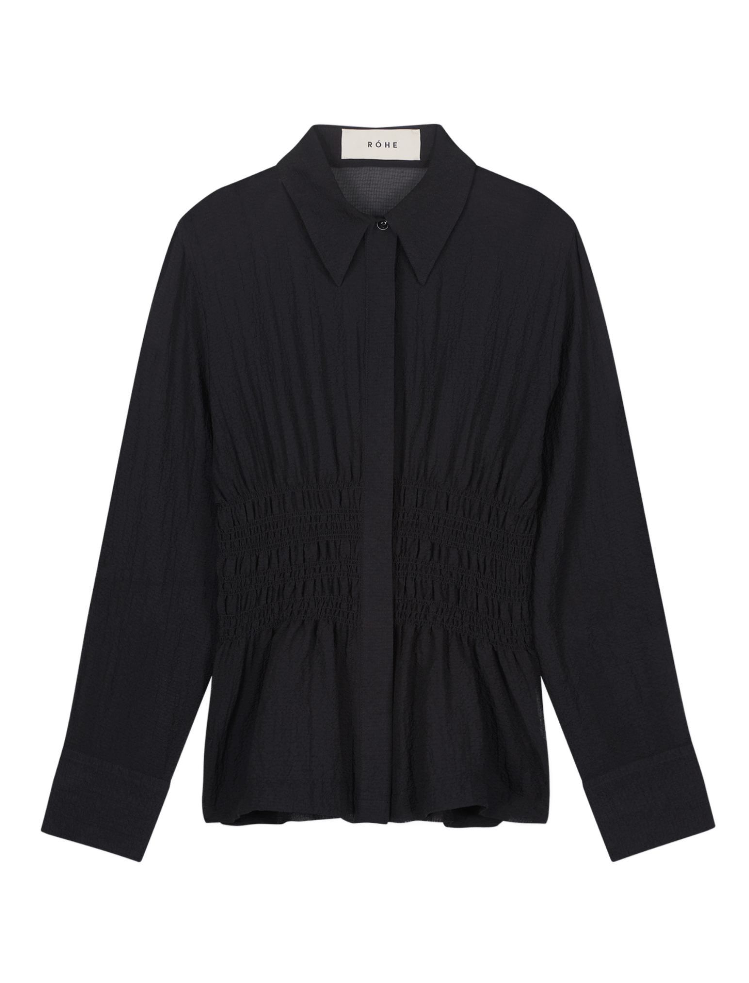 The Róhe Smocked Waist Blouse in Noir is made from 100% Polyester