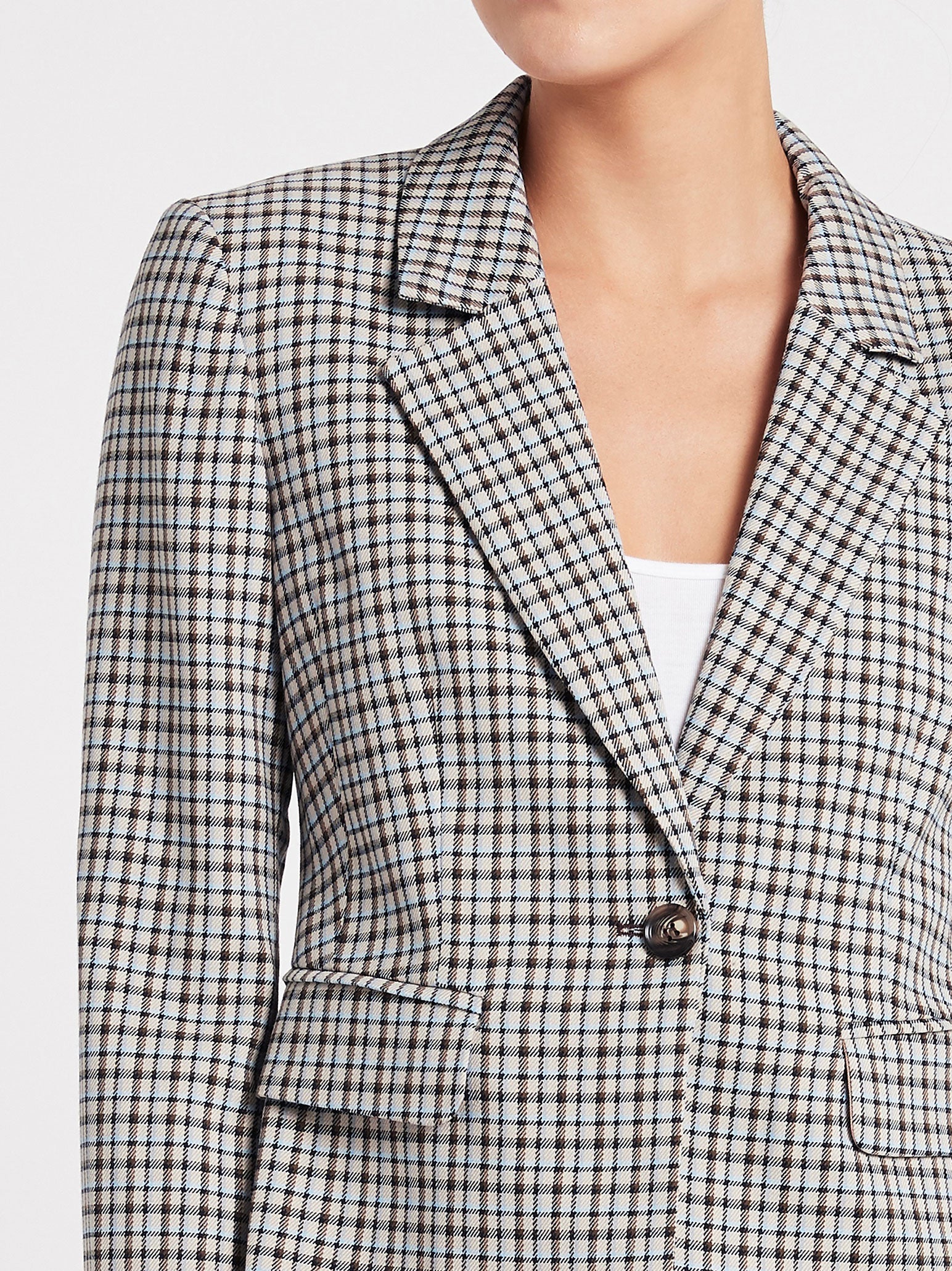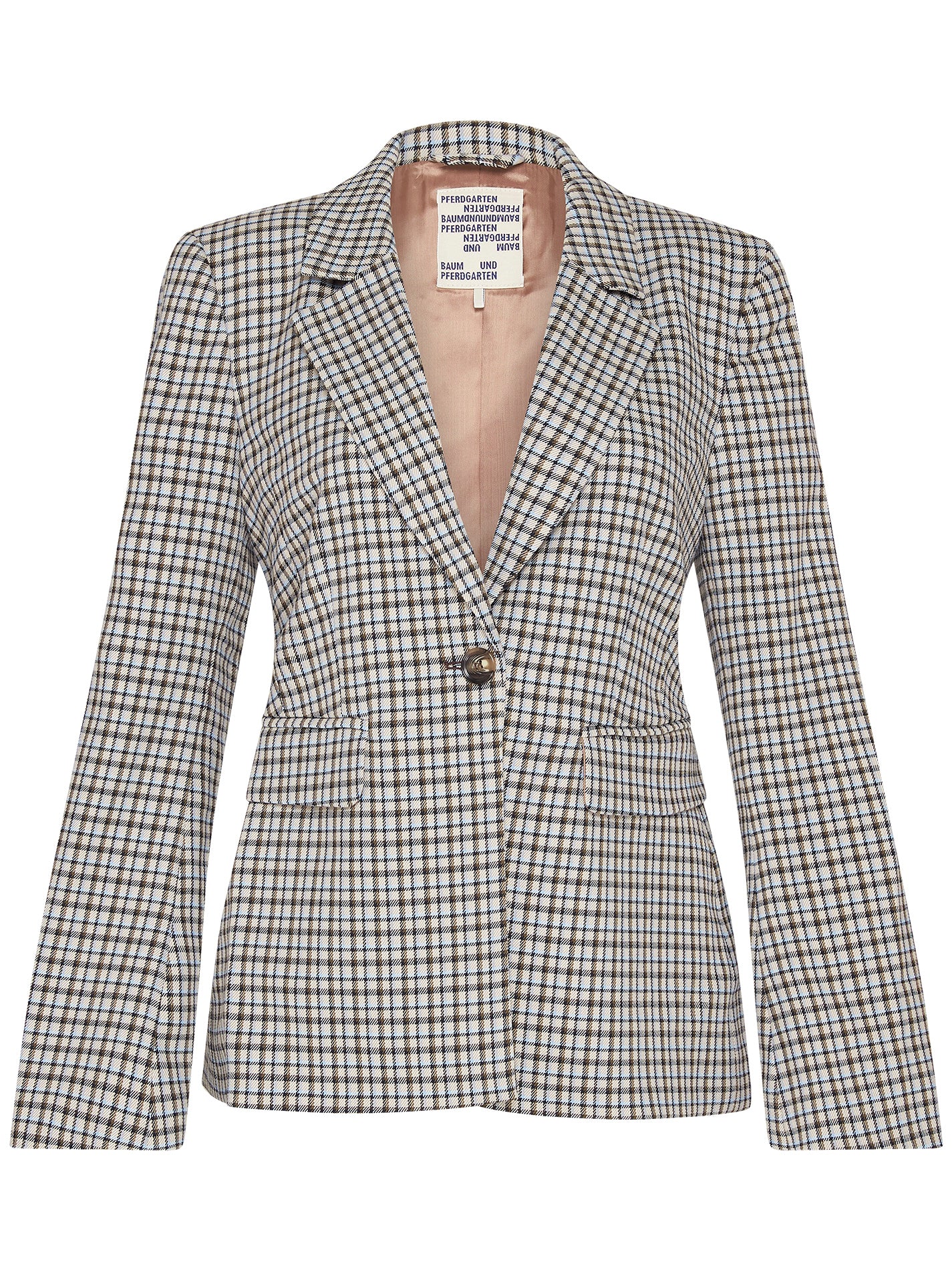 The Baum Und Pferdgarten Blonda Jacket in Dusk Autumn Check is made from 69% Polyester, 30% Viscose, 1% Elastane with a 100% Viscose Lining