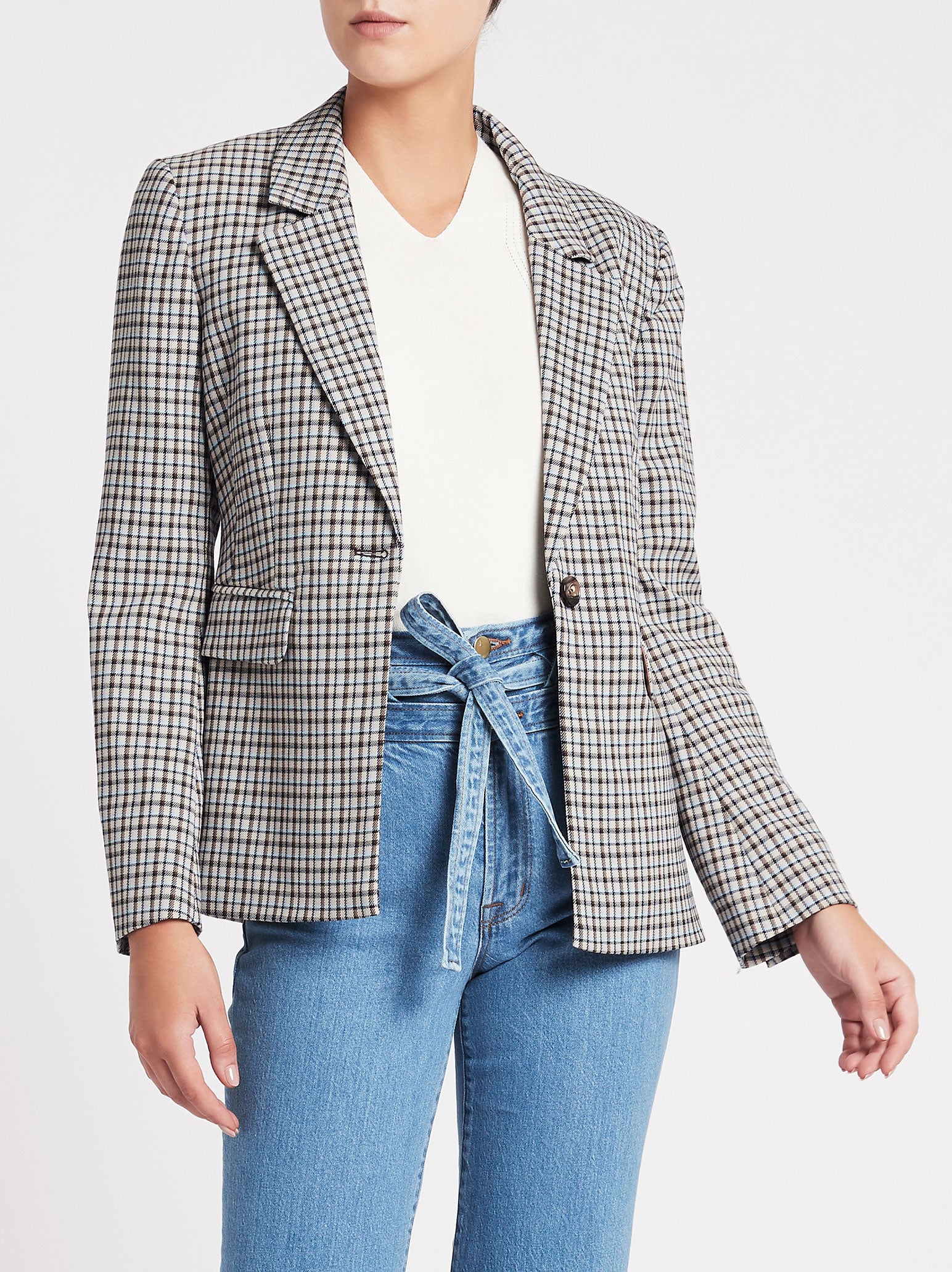 The Baum Und Pferdgarten Blonda Jacket in Dusk Autumn Check brings casual chic to the streets. This fitted blazer with notch lapels and a button closure front can be paired with skinny jeans, or dressed up with fitted trousers for the ultimate in business-boss.