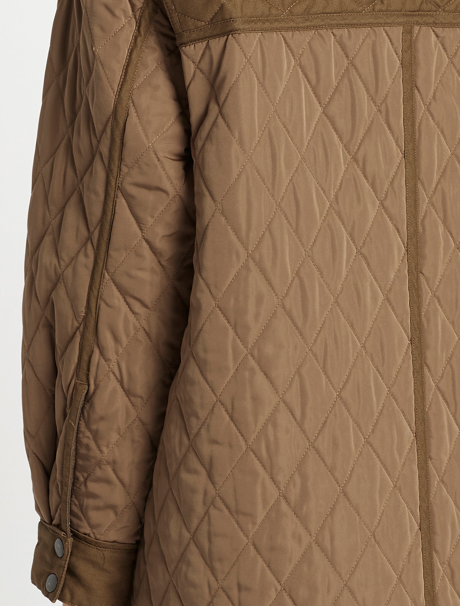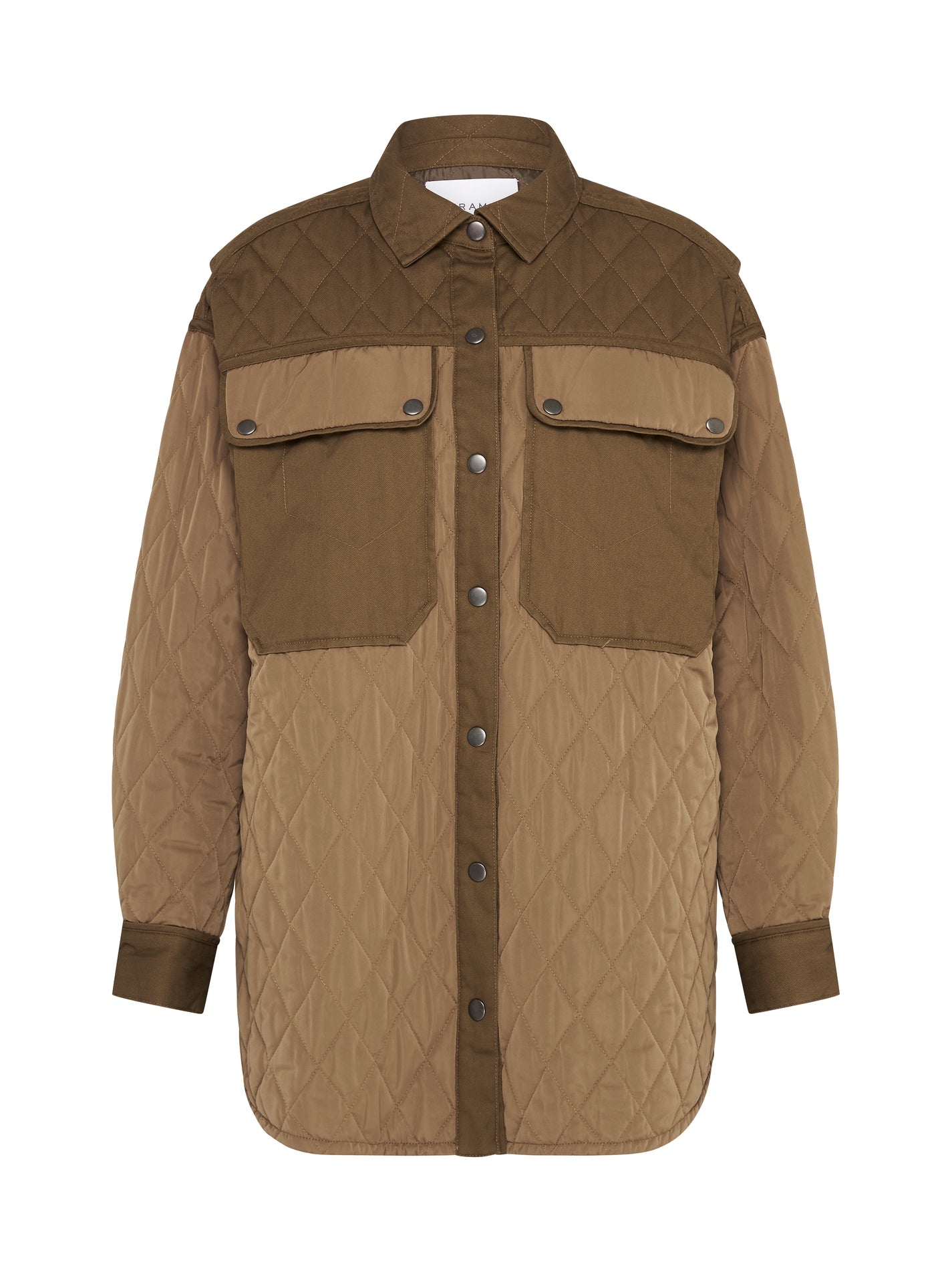 It's all about shackets right now and we have the perfect utilitarian inspired piece by Frame Denim. The Oversized Shirt Jacket in Desert features classic quilting for a super snug feel, long sleeves, snap button closured and ultra cool oversized flap pockets. This style is inspired by classic British Hunting jackets.