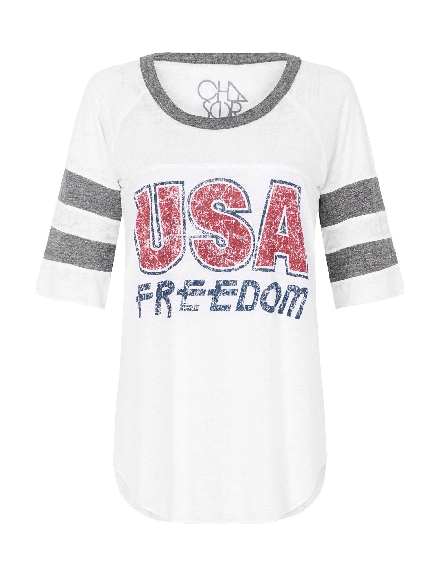 The Chaser USA Freedom Top in White is made of 60% Cotton 40% Polyester