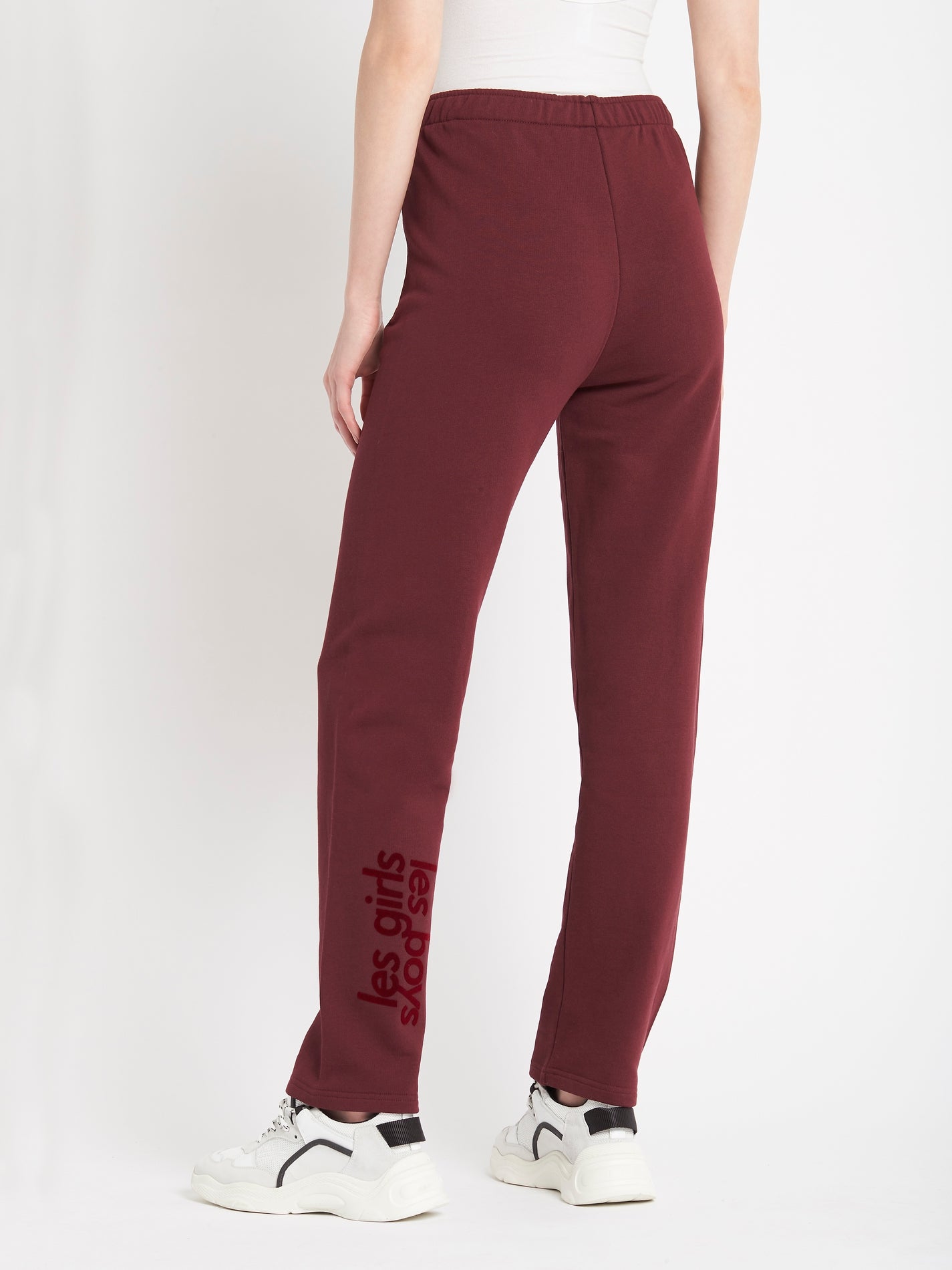 The Les Girls Les Boys Loopback Straight Leg Track Pant in Tawny Port is a slim style fit, adjust for your preferred sizing.