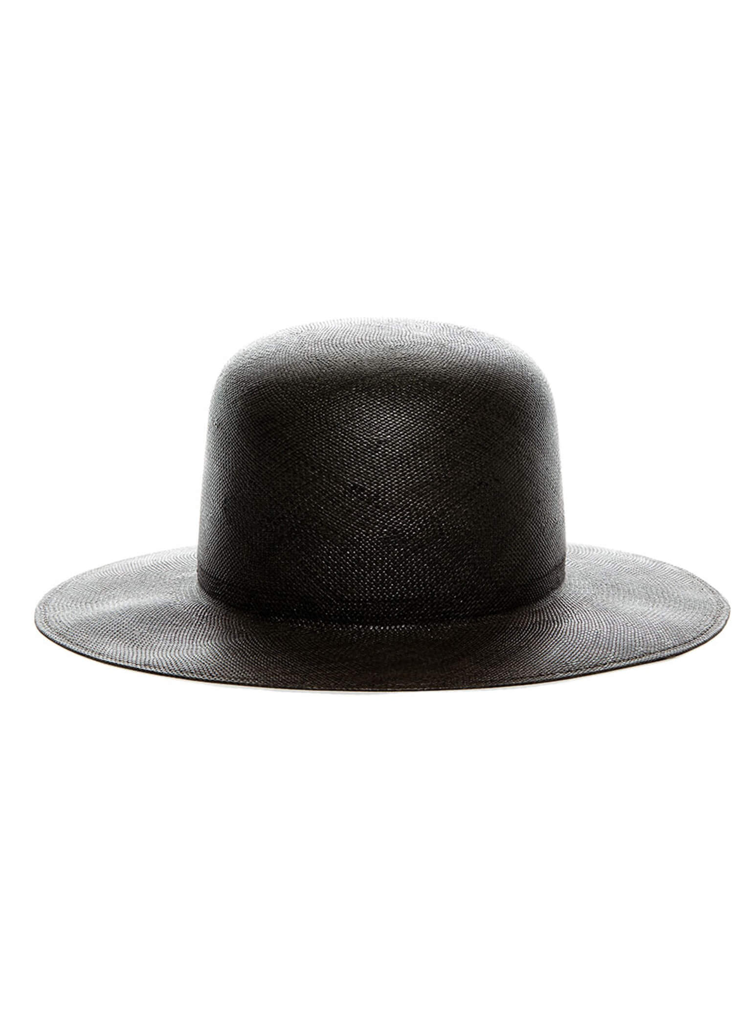 The Abby Hat from Janessa Leoné is modern, fashion forward shape based on a traditional bowler design. Featuring a flattened and widened brim which helps to frames the face. This hat is made from a unique Japanese Glazed straw in a charcoal hue.