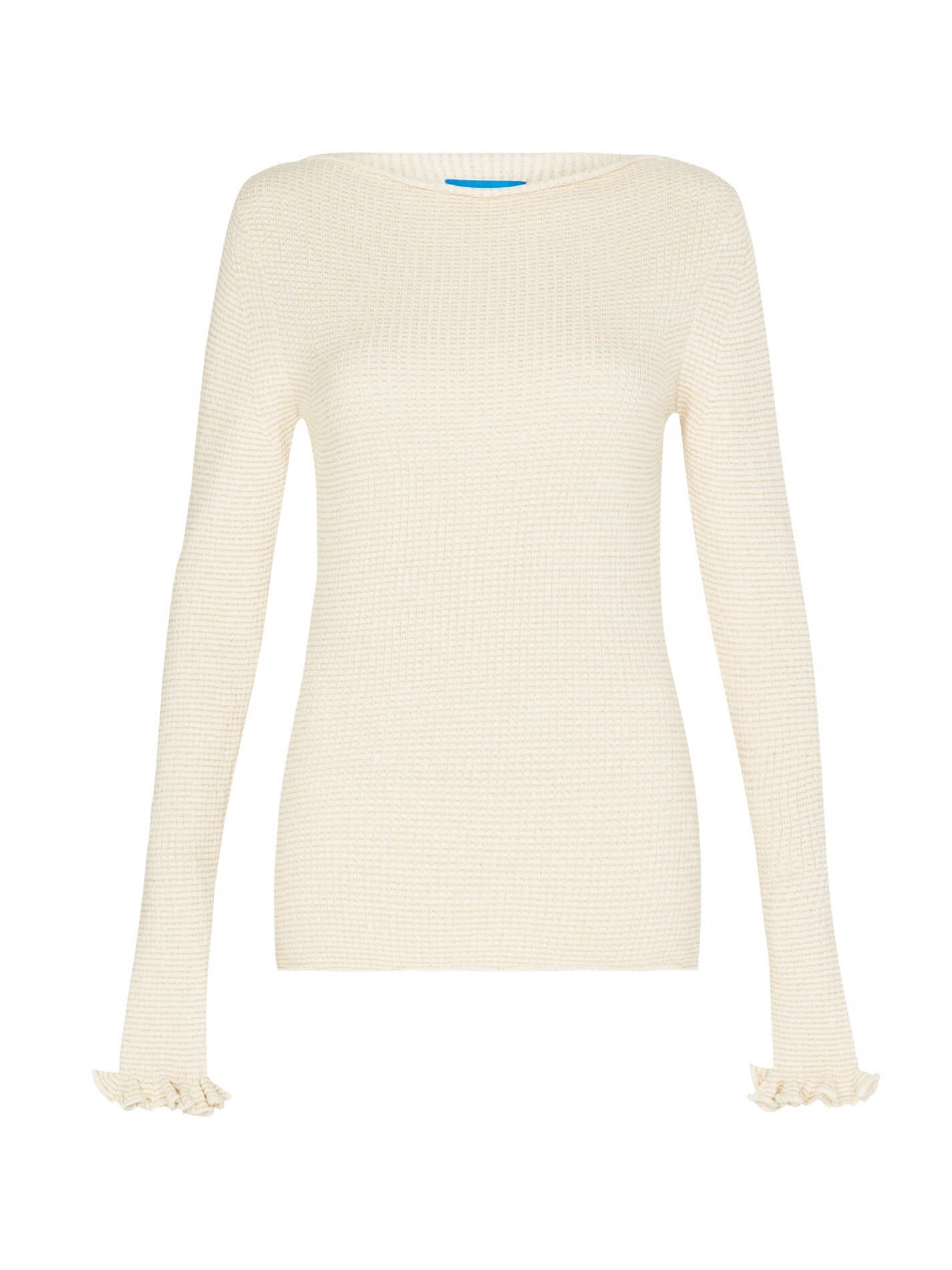 The M.i.h Jeans Joel Sweater in Cream/Gold is the perfect classic sweater with a romantic twist. Constructed from a cotton blend waffle knit this long sleeve top features a slim fit, fluted frill sleeves and is finished with a rolled neckline.