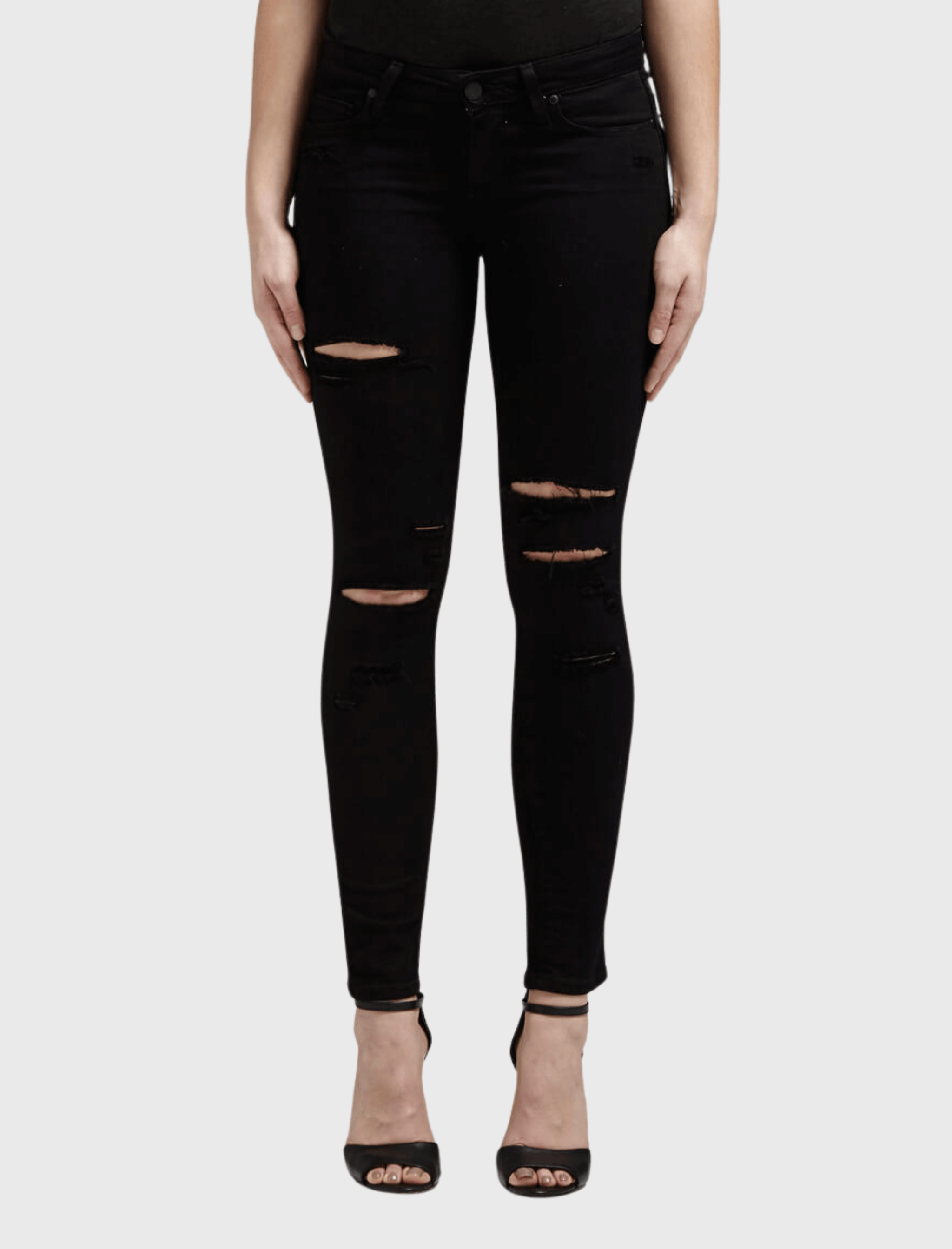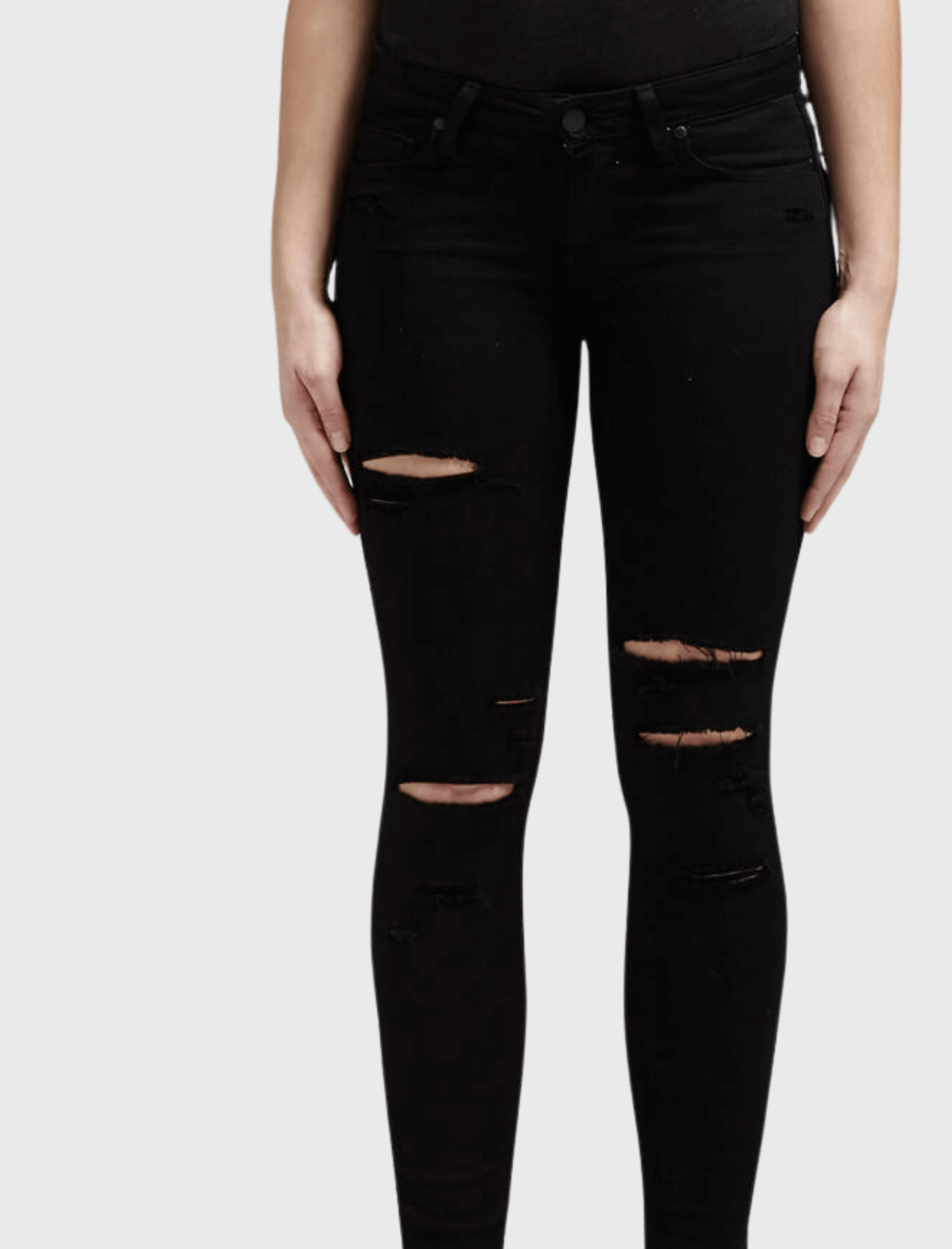 The Verdugo Arlo Destructed Jean by Paige are a super soft black wash, and have destruction along the thighs and knees. With a low rise of 8 inches and accented by stylish matte black hardware, these jeans are just the right amount of rock and roll.