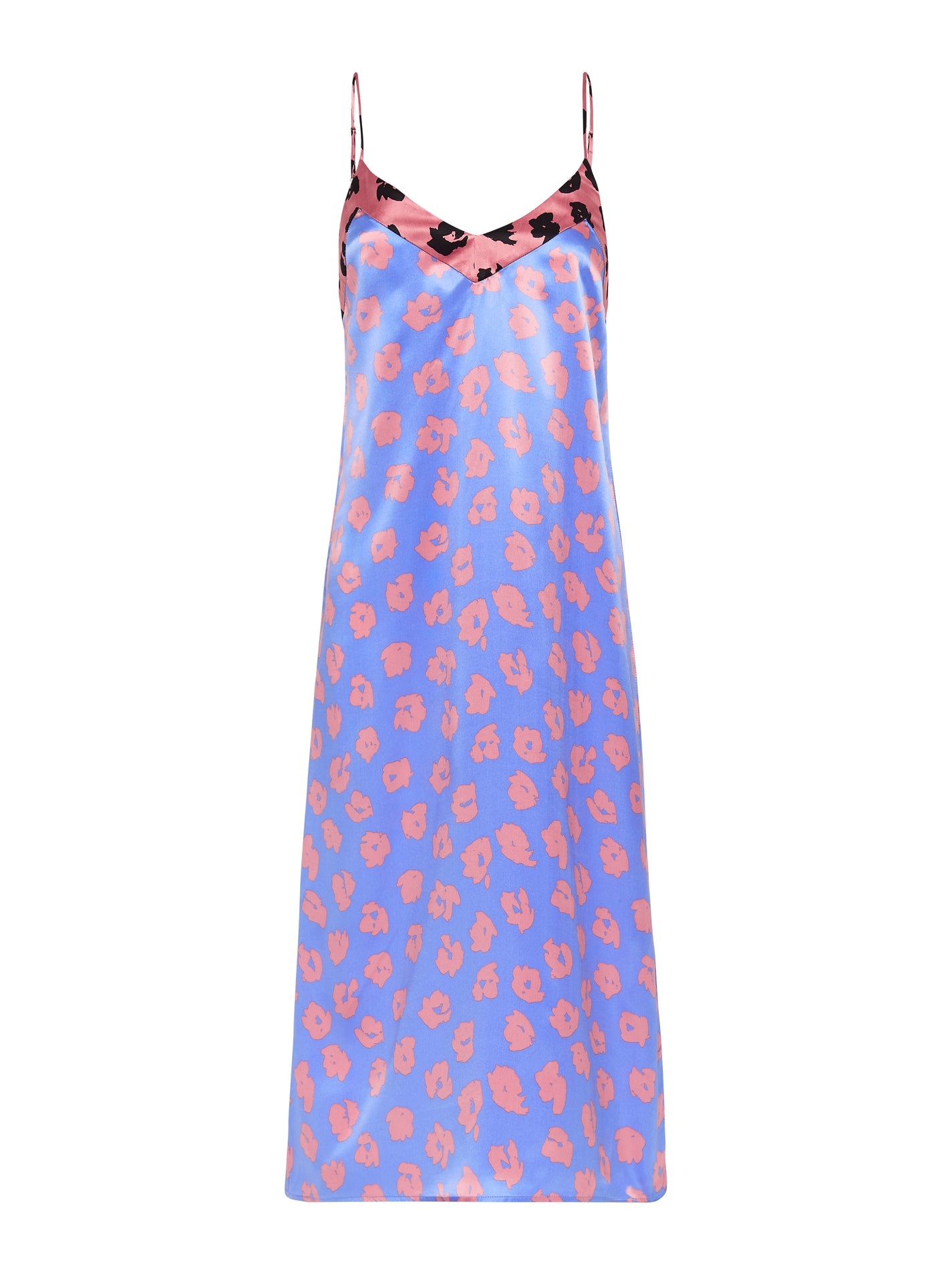 The Equipment Jules Slip dress in Sahara Sky / Apricot Rose is a classic chemise style in a luxurious silk satin fabrication. This pull over design features adjustable straps but no closures for the ultimate in comfort. A contrast panelling design in the black and pink floral along the V shaped neck line creates visual interest and a small slit on the hem seam allows for ease of movement.
