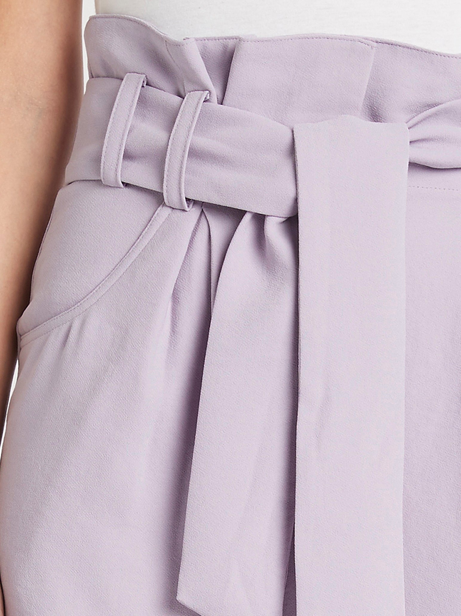 Jump on board the lilac train with the IRO Steybe Shorts in Lilas. Constructed from a cotton, viscose blend these super soft shorts feature a high paper bag tie waist, removable belt, soft pleating and front pockets. Style with a flowy top and strappy heels for easy date night style.