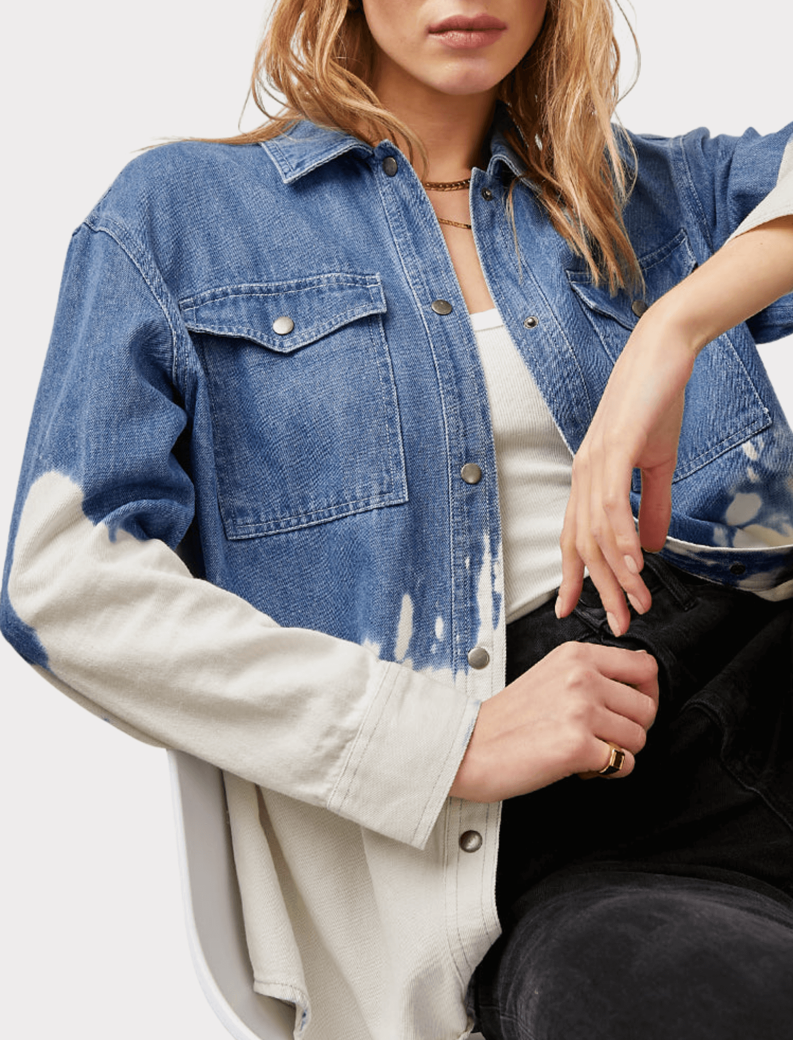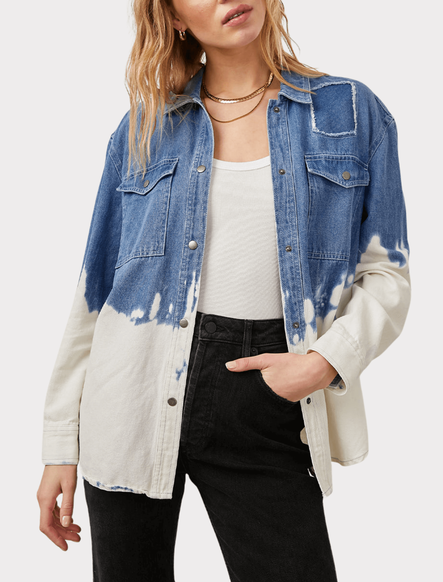 The perfect tran-seasonal piece - wear it as a shirt or a light weight jacket. The Turner Shacket in Bleached Denim from Rails Clothing is sure to become a staple of your wardrobe. Slightly oversized style is made from a heavyweight Tencel™ denim, this classic button-down features a bleached-out hand dip dye design along the hem, flap pockets at chest and metal snap buttons.