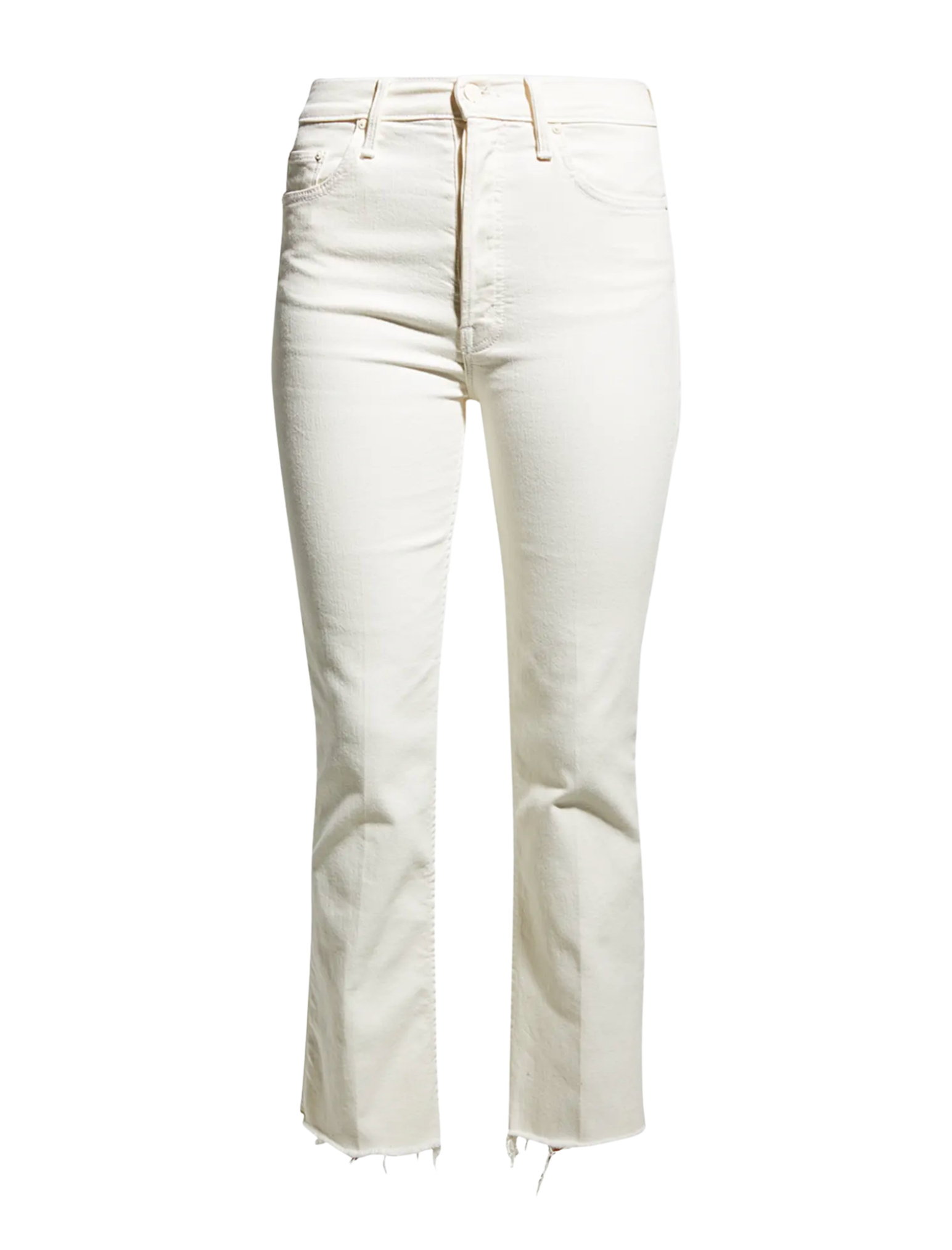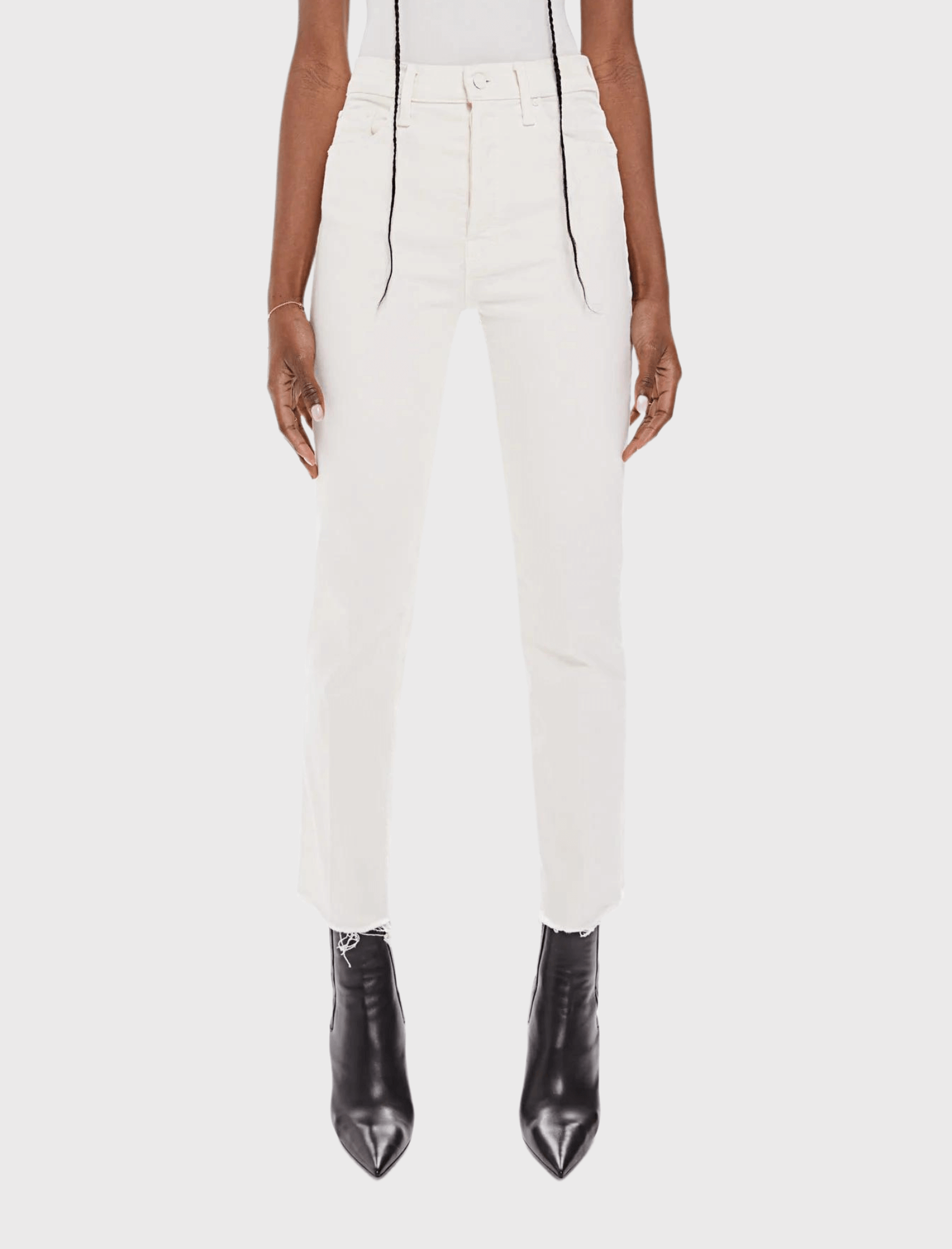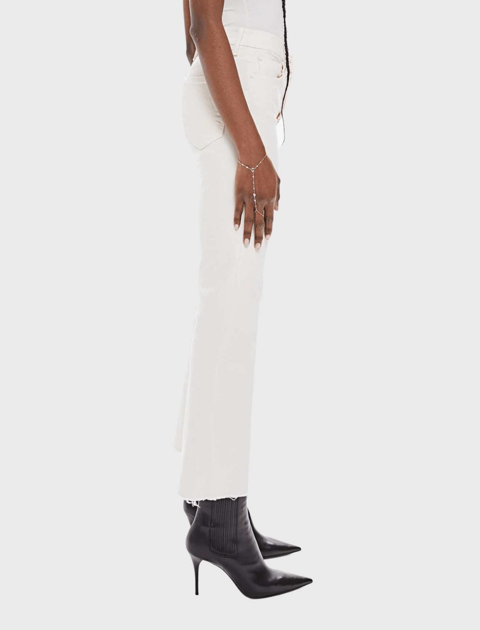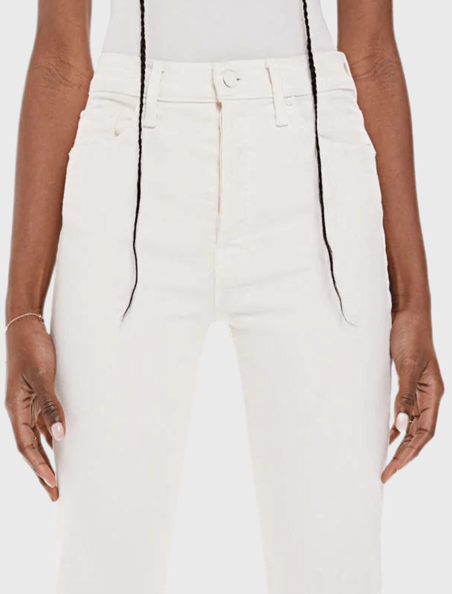 The Mother Denim The Tripper Ankle Fray Jean in Antique White is made from 94% Cotton, 4% Polyester & 2% Elastane