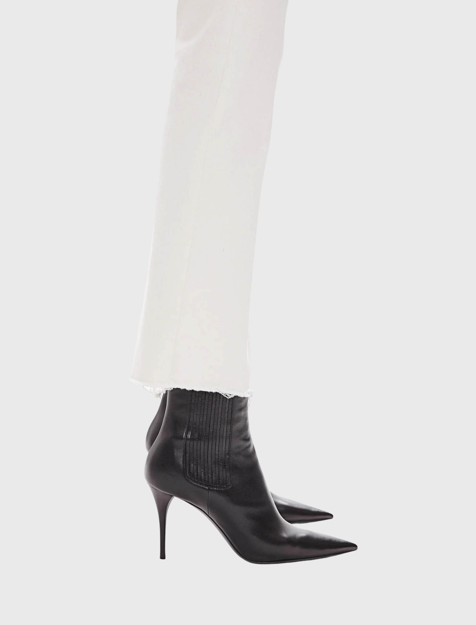 The Mother Denim The Tripper Ankle Fray Jean in Antique White fits true to size