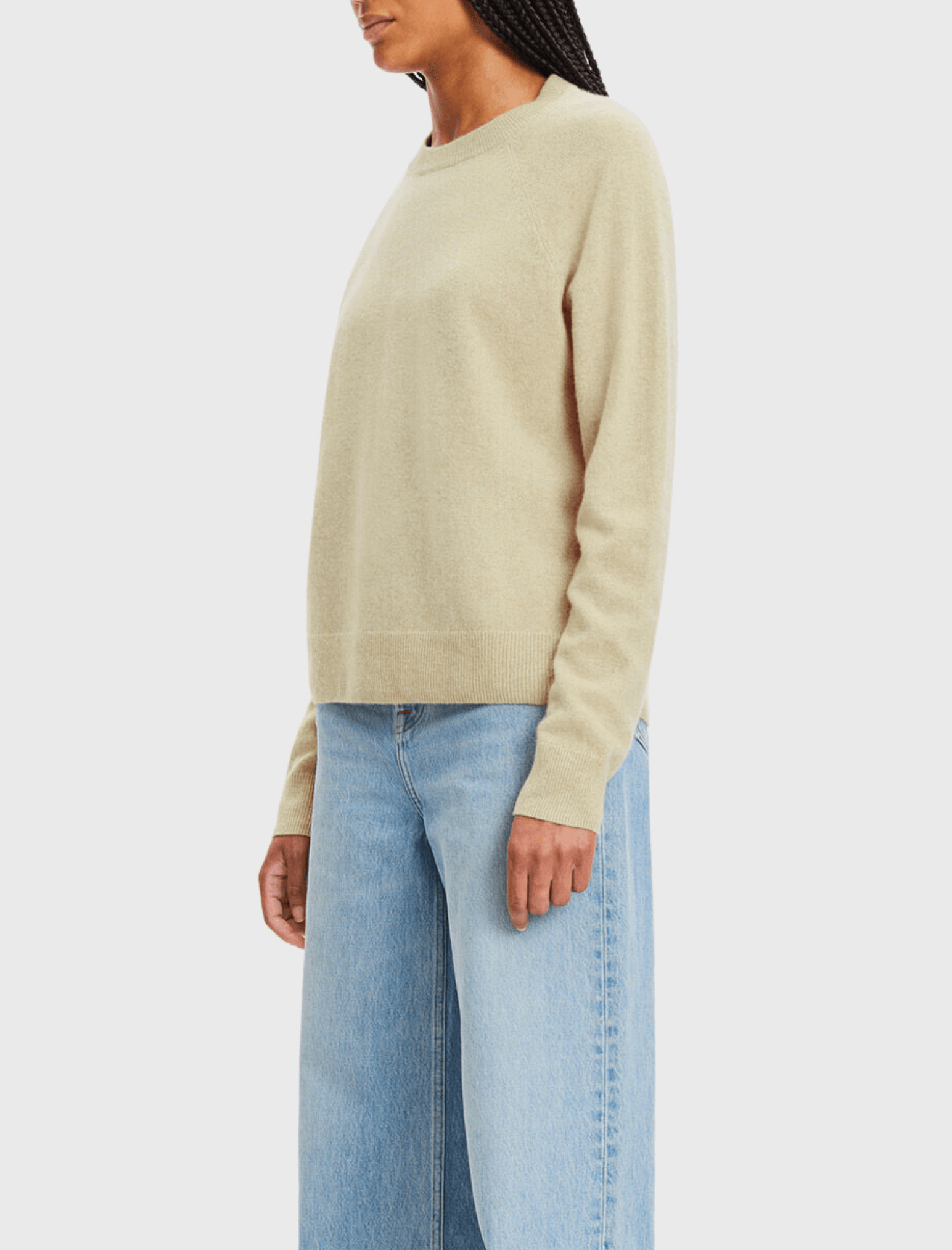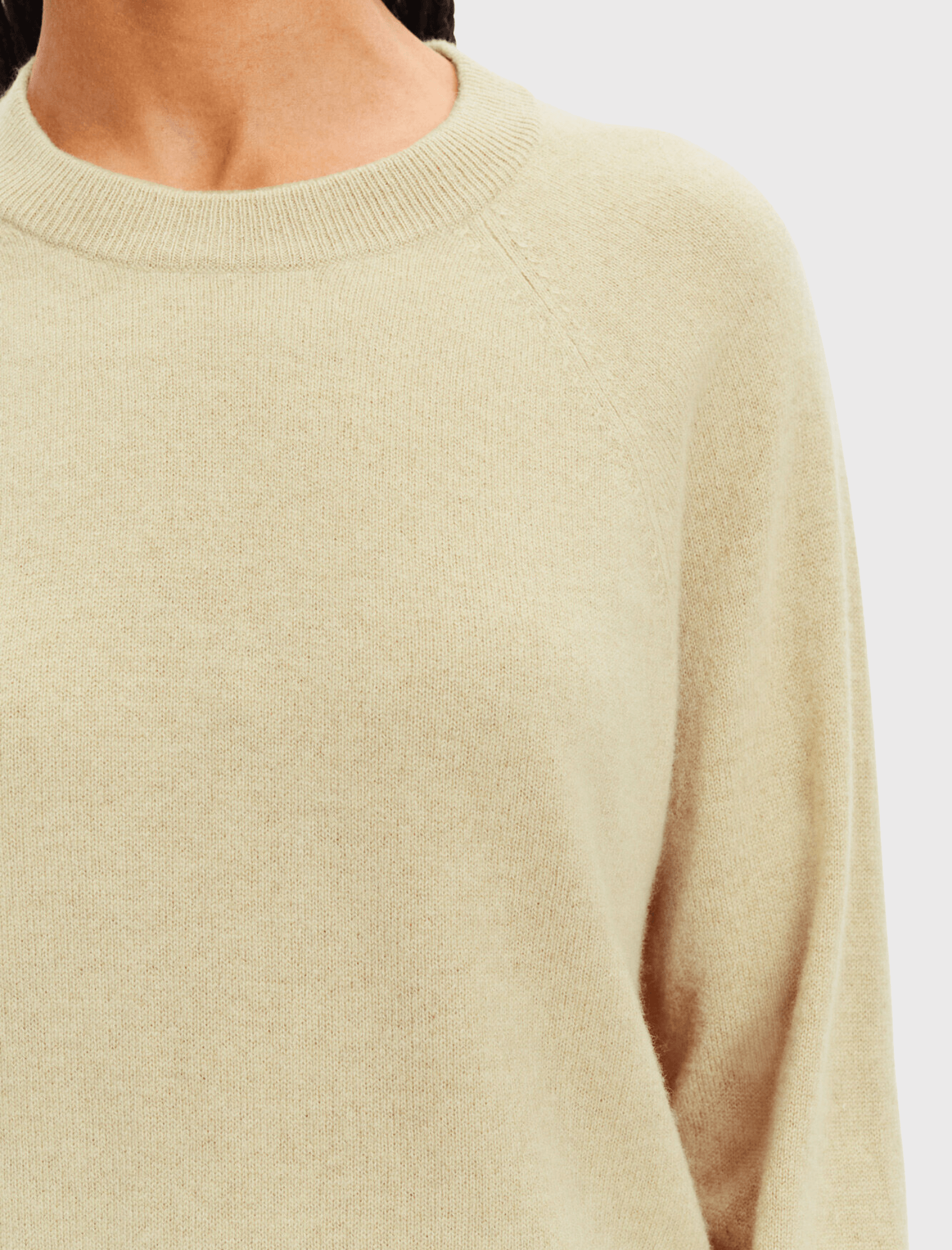 The Samsoe Samsoe Boston O-Neck Knit Sweater in Pistachio Shell is made from 100% Cashmere