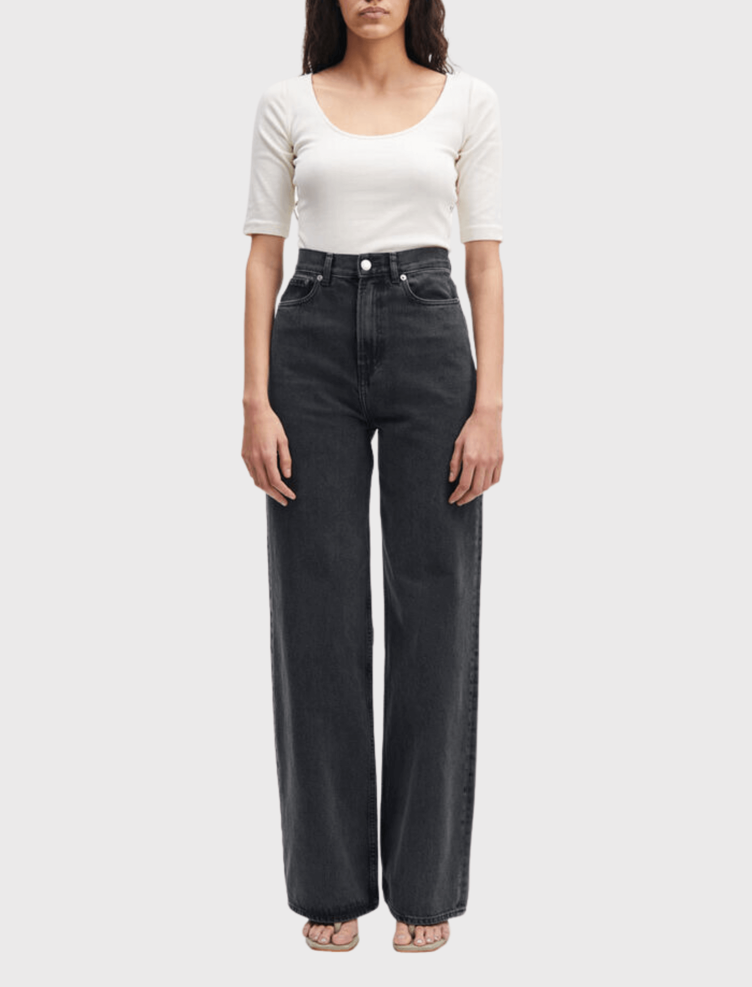 The Samsoe Samsoe Rebecca Jean in Black Dust is the wide legged jean of our dreams. With five-pocket western styling, zip fly, belt loops and a lightly faded wash, these jeans are composed of an organic cotton and recycled cotton blend. We think the would look amazing on you - why not pair with a cropped knit and sneakers?