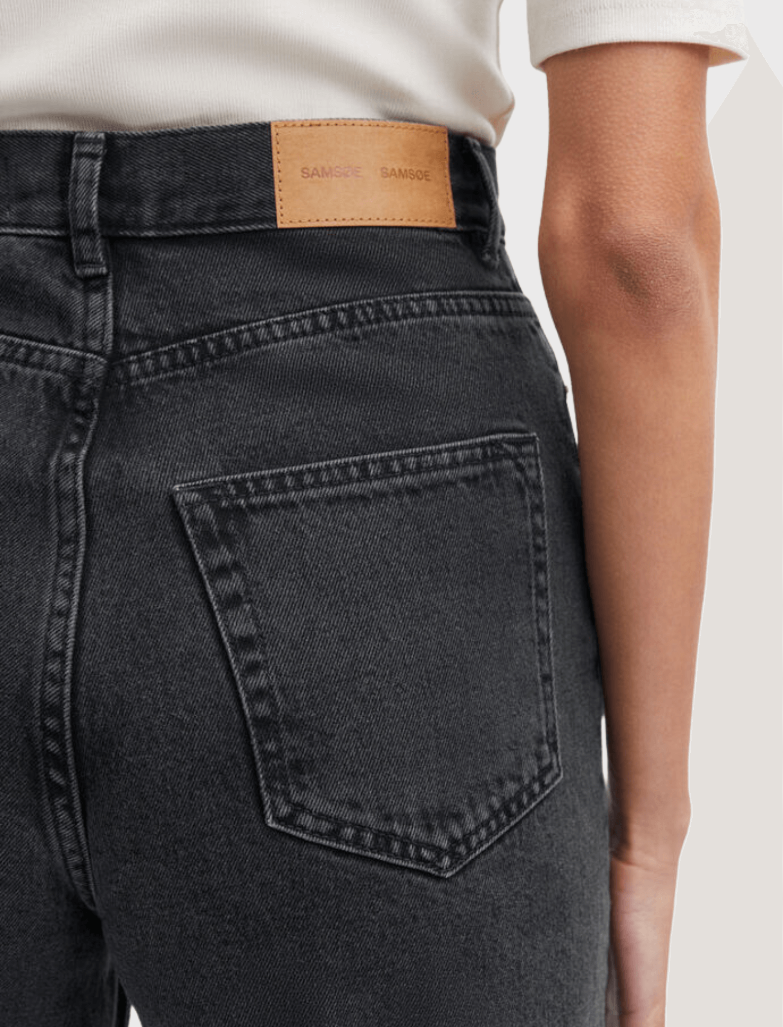 The Samsoe Samsoe Rebecca Jean in Black Dust is made from 80% Organic Cotton, 20% Recycled Cotton, 1% Elastane, Pocket Lining: 100% Cotton,