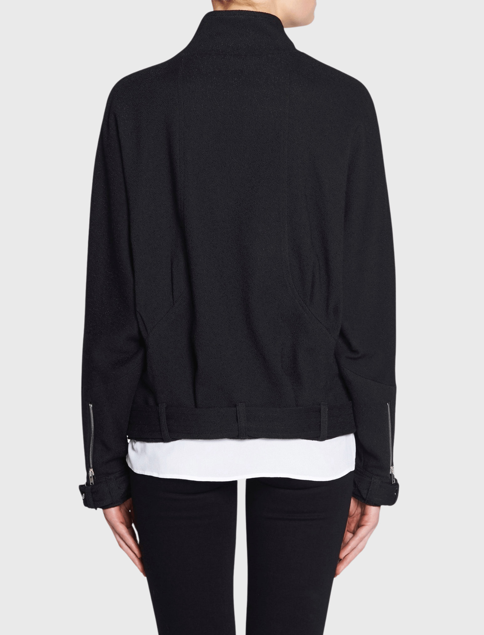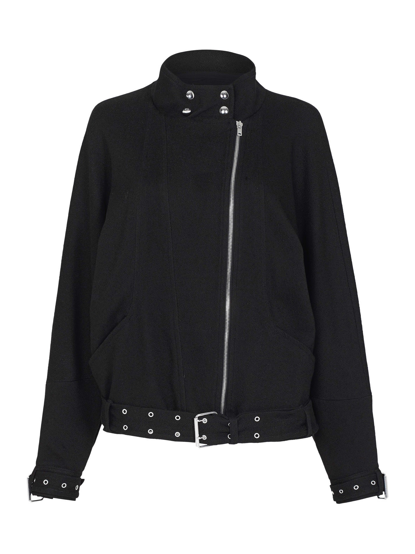 The Hollie Jacket by IRO in black is the ultimate versatile piece that's perfect for the cooler months. This soft textured jacket features an optional topstitched belt at the hem, a zip closure, 2 pockets and buckle detailing at the cuffs. Team this piece with a variety of looks all winter long.