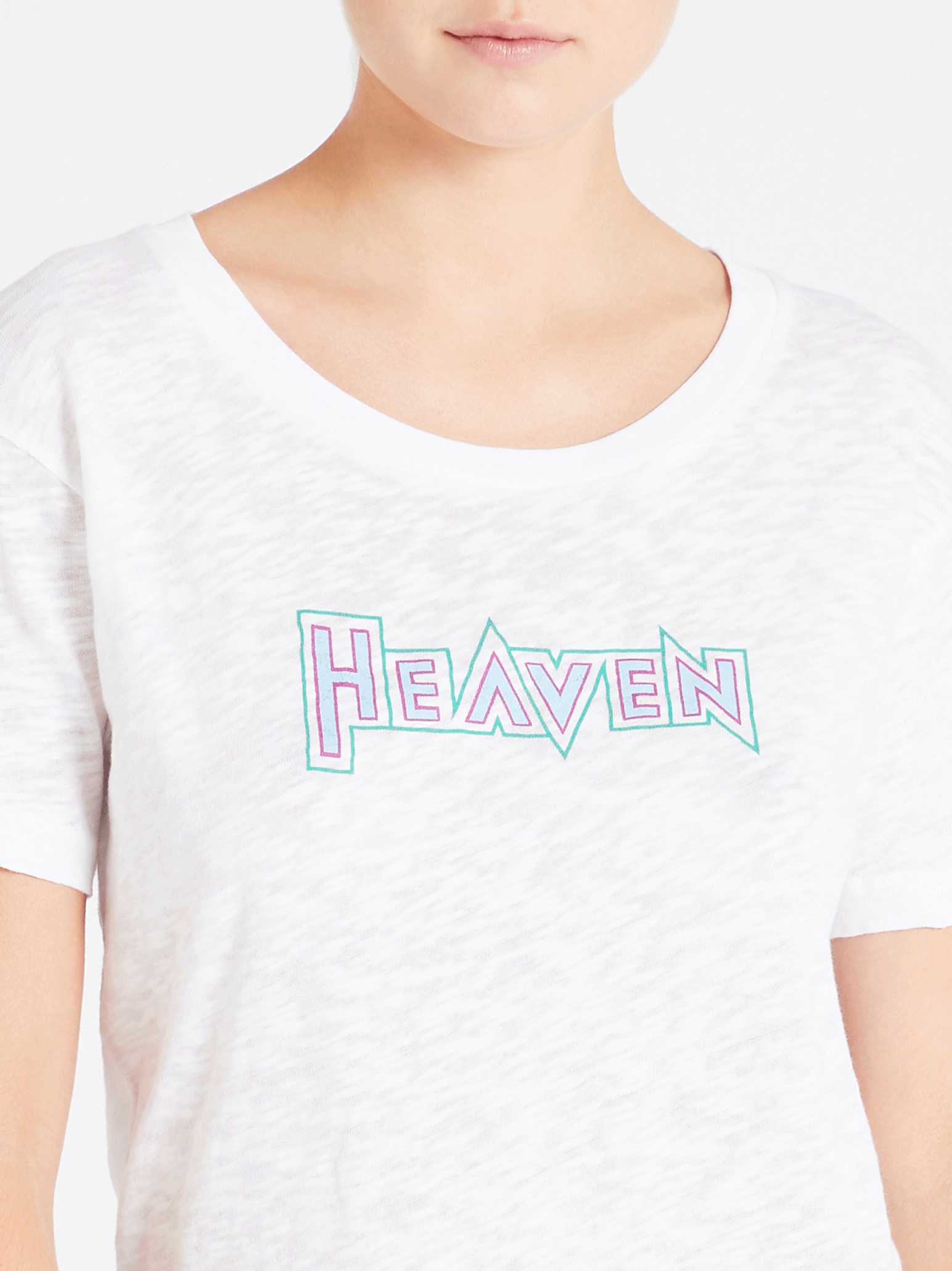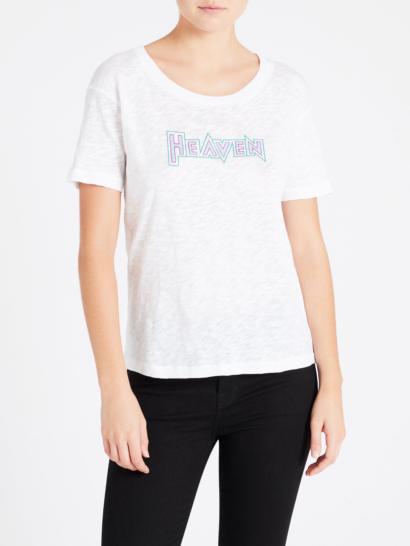 Step up your casual tee collection with the Heaven Tee by M.i.H Jeans. With a retro inspired graphic Heaven print and constructed from a soft cotton, this M.i.H tee pairs perfectly with your favourite pair of jeans and white chunky sneakers.