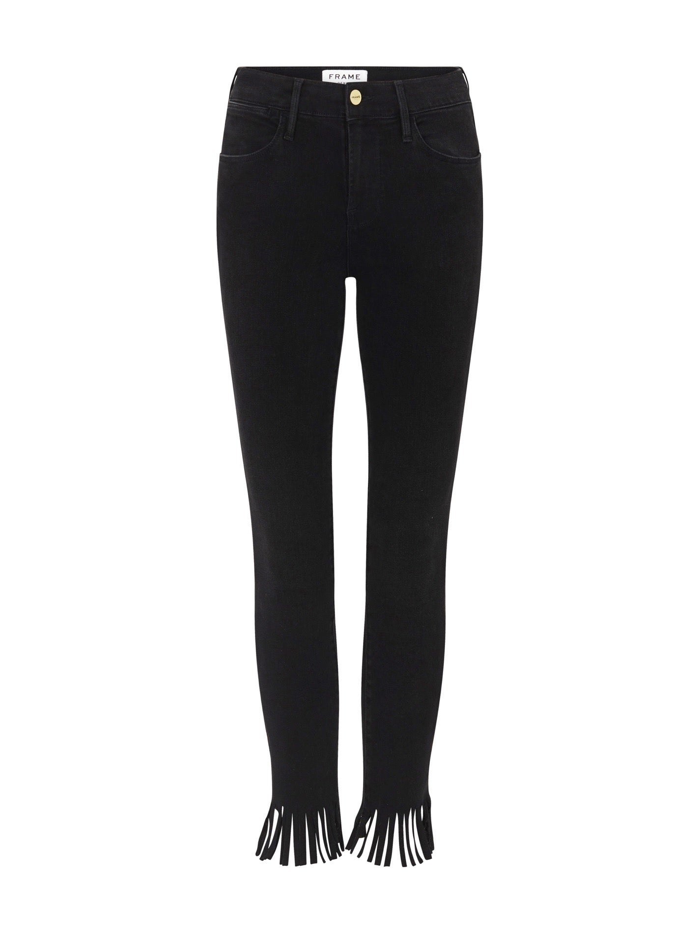 The Frame Denim Le High Skinny Fringe Jean in Golden Park is made from 68% Cotton 17% Lyocell 8% Modal 4% Polyester 3% Elastane
